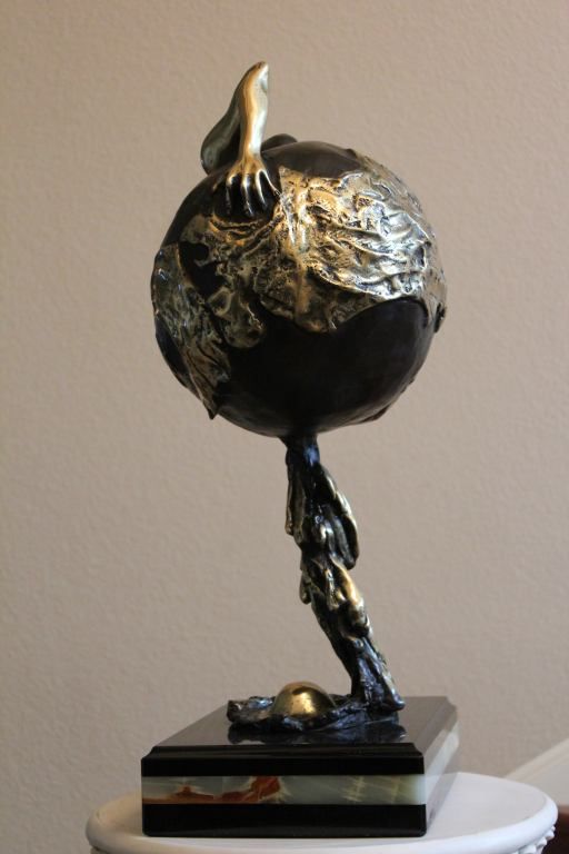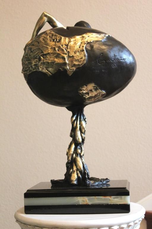 SALVADOR DALI - "BIRTH OF THE NEW HUMAN" ORIGINAL LIMITED EDITION BRONZE SCULPTURE - SIGNED "DALI" IN THE CAST - INSPIRED BY THE PAINTING BY SALVADOR DALI - LIMITED EDITION OF 100 - LOST WAX CAST - MAGNIFICENT PATINA - MOUNTED ON MARBLE BASE - 22"H X 11"W X 8"D - SIGNED BY THE SCULPTOR "CASTANO" W/ COPYRIGHT STAMP