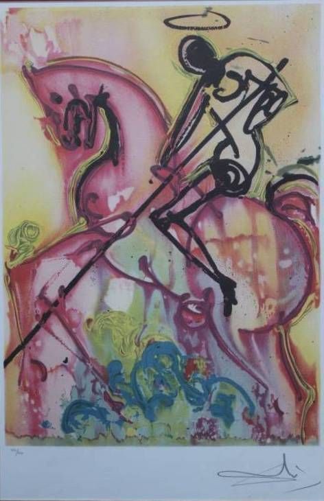 SALVADOR DALI FROM THE DALINEAN HORSES SUITE - "ST GEORGE & THE DRAGON" NUMBERED LIMITED EDITION LITHOGRAPH ON HEAVY ARICHIVAL WOVE PAPER- SIGNED IN THE PLATE - NUMBERED IN PENCIL - MINT CONDITION - PROFESSIONALLY FRAMED & MATTED - IMAGE APPX 16" X 12"