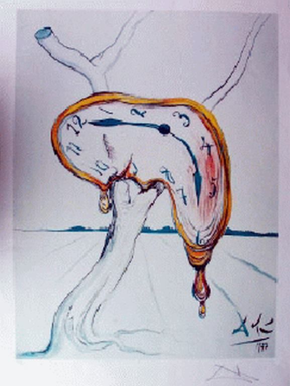 SALVADOR DALI "TEARFUL SOFT WATCH" LIMITED EDITION LITHOGRAPH - ON HEAVY ARCHIVAL PAPER - SIGNED IN THE PLATE - NUMBERED IN PENCIL - PROFESSIONALLY FRAMED AND MATTED - MINT - 30" X 20" APPX PAGE