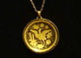 DAMASCENE 24K GOLD LEAF INLAY VTG 1960'S 24" PENDANT NECKLACE. ON BASE METAL