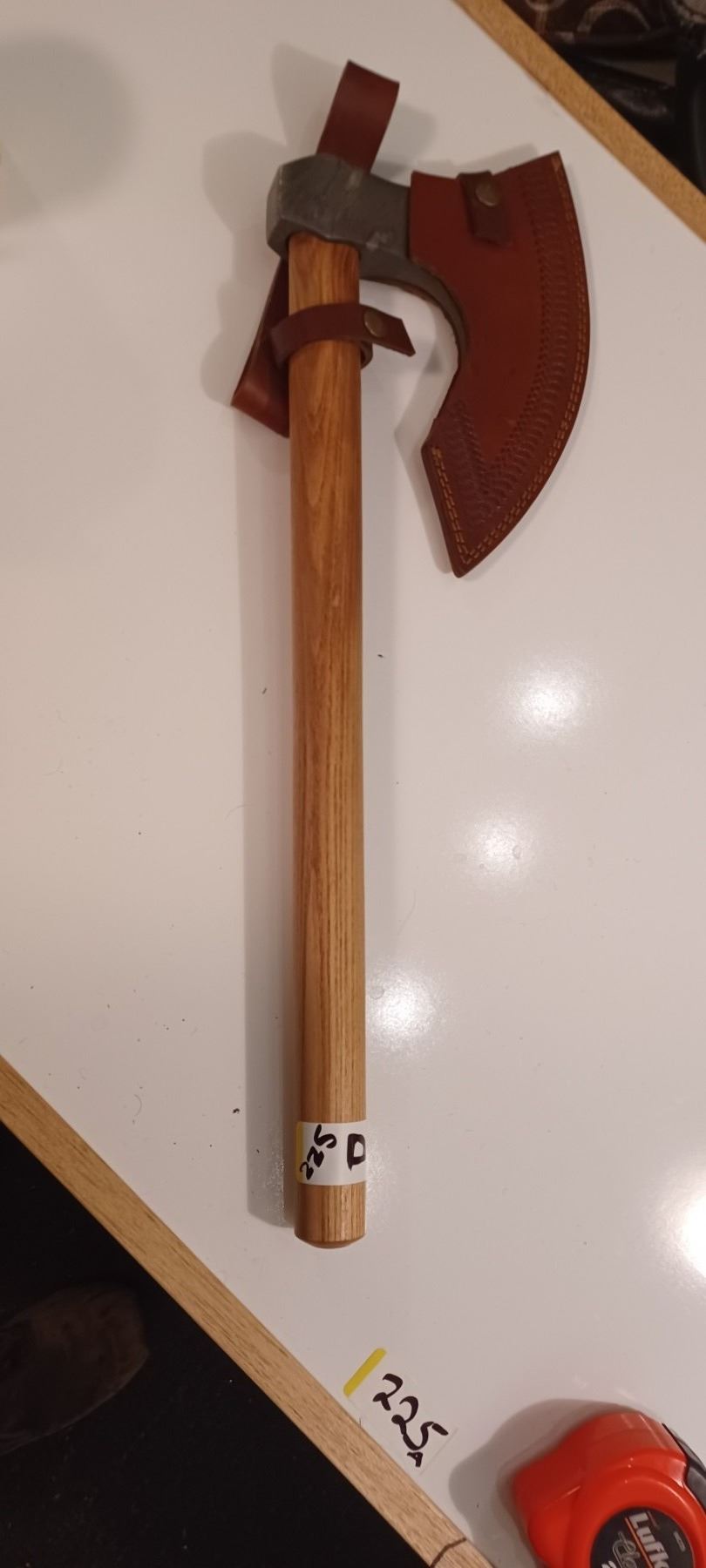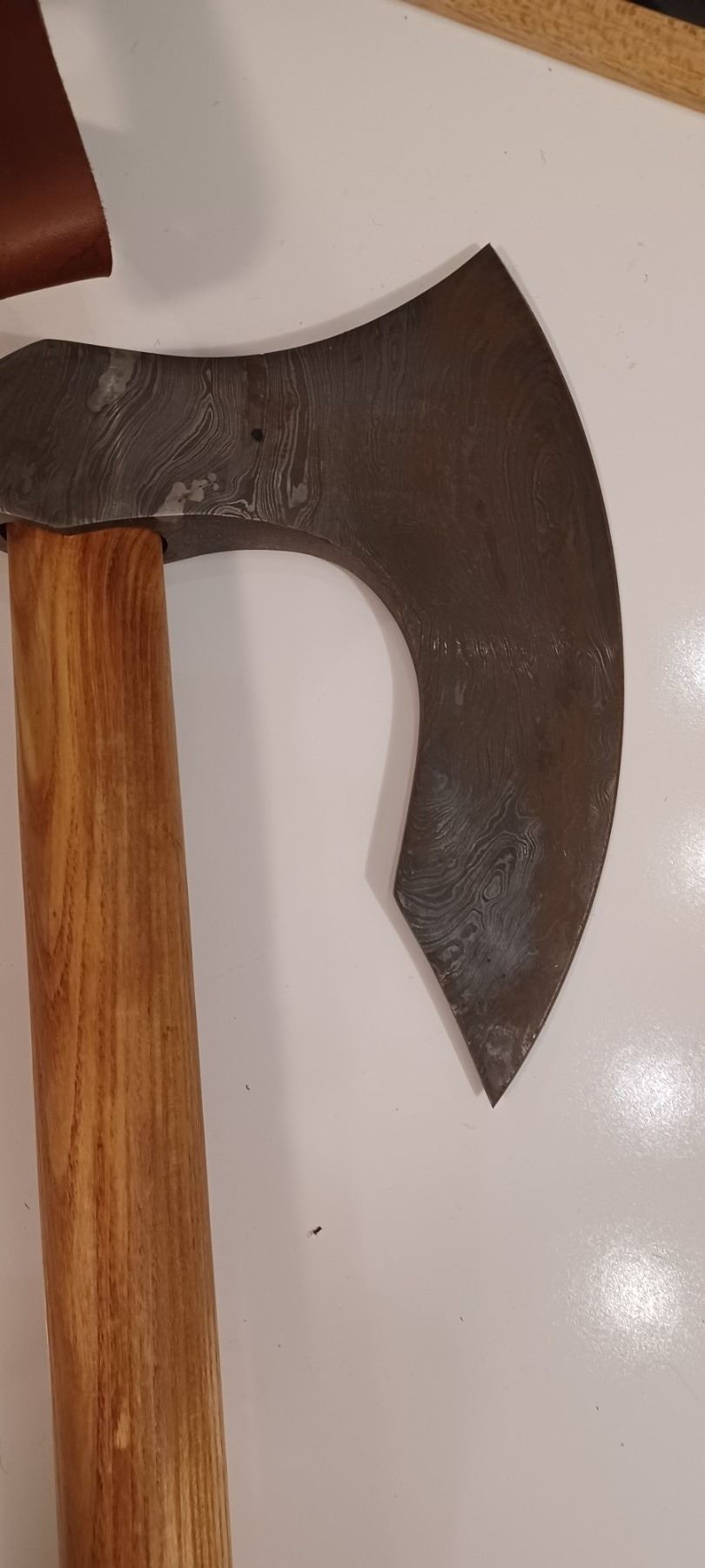 DAMASCUS AXE C/W WITH HEAVY LEATHER SHEATH