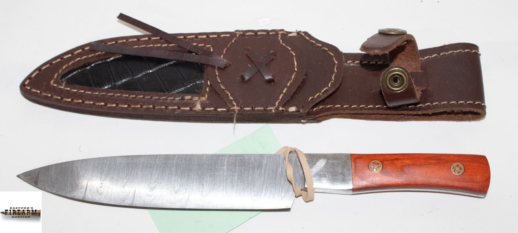 DAMASCUS HUNTING KNIFE ROSEWOOD HANDLE