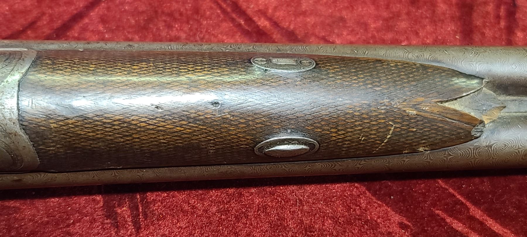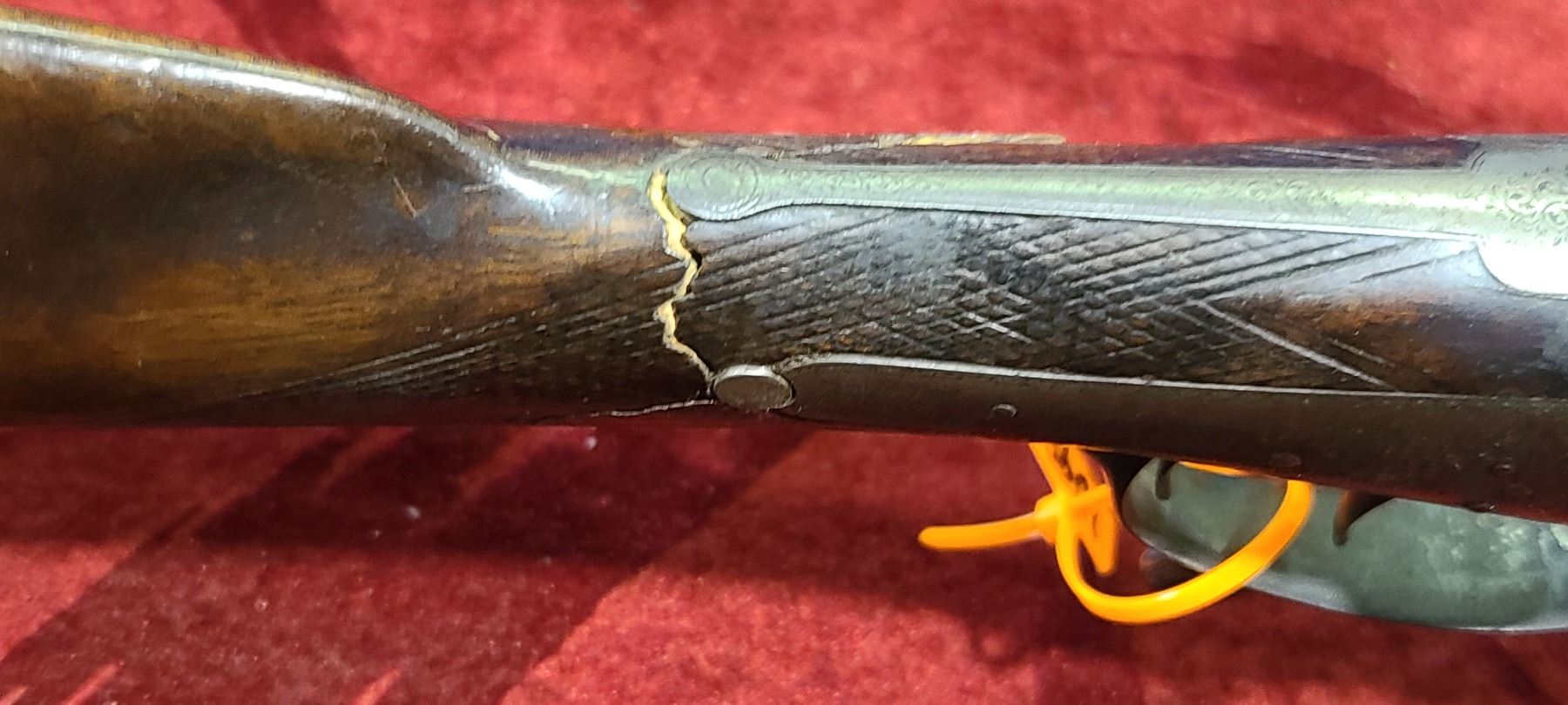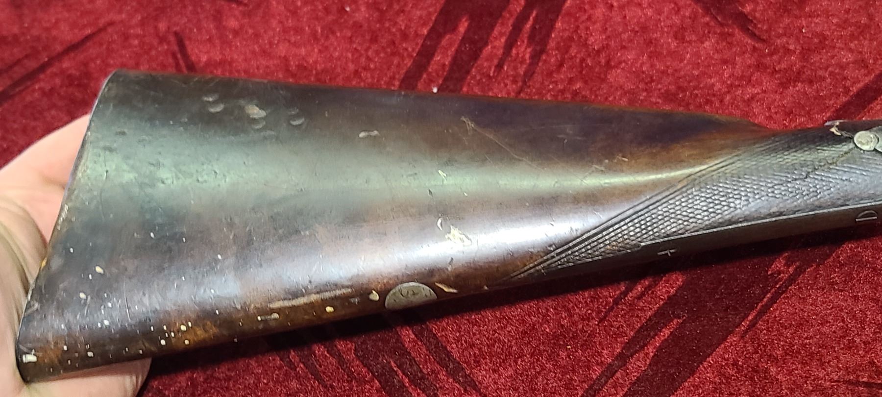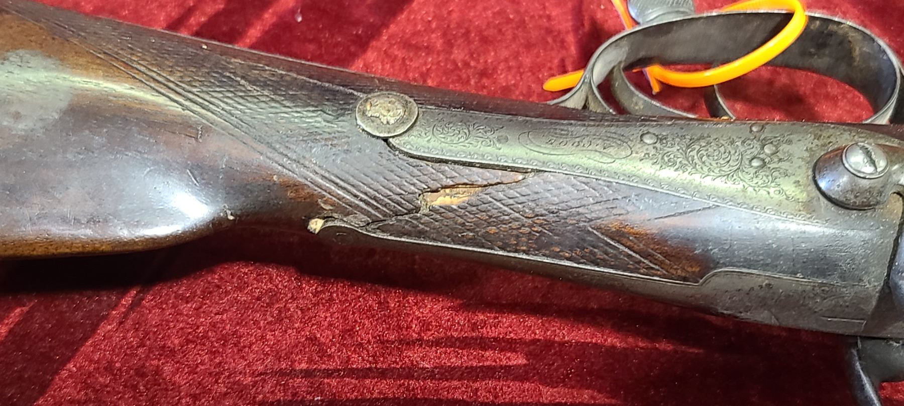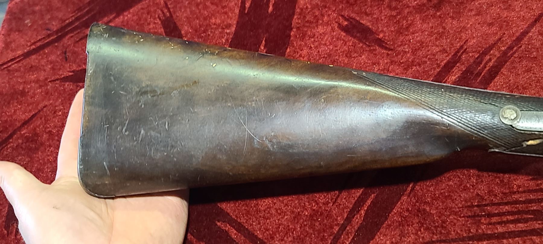 DAMASCUS UNDER LEVER HAMMER GUN STOCK BROKEN 28 INCH BARREL (349)