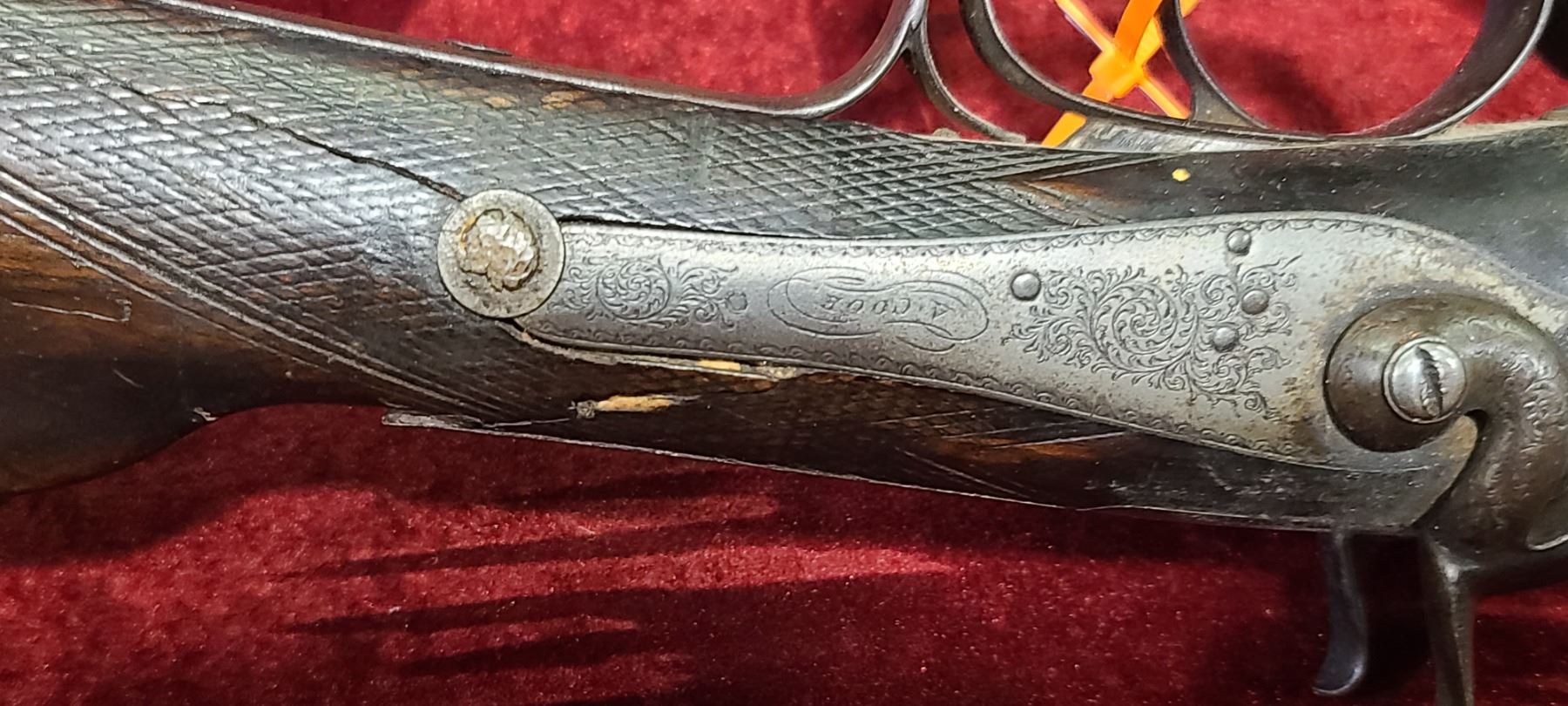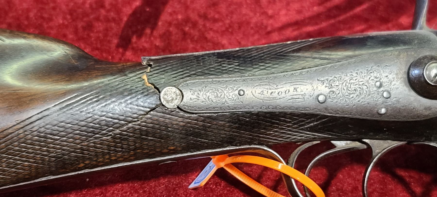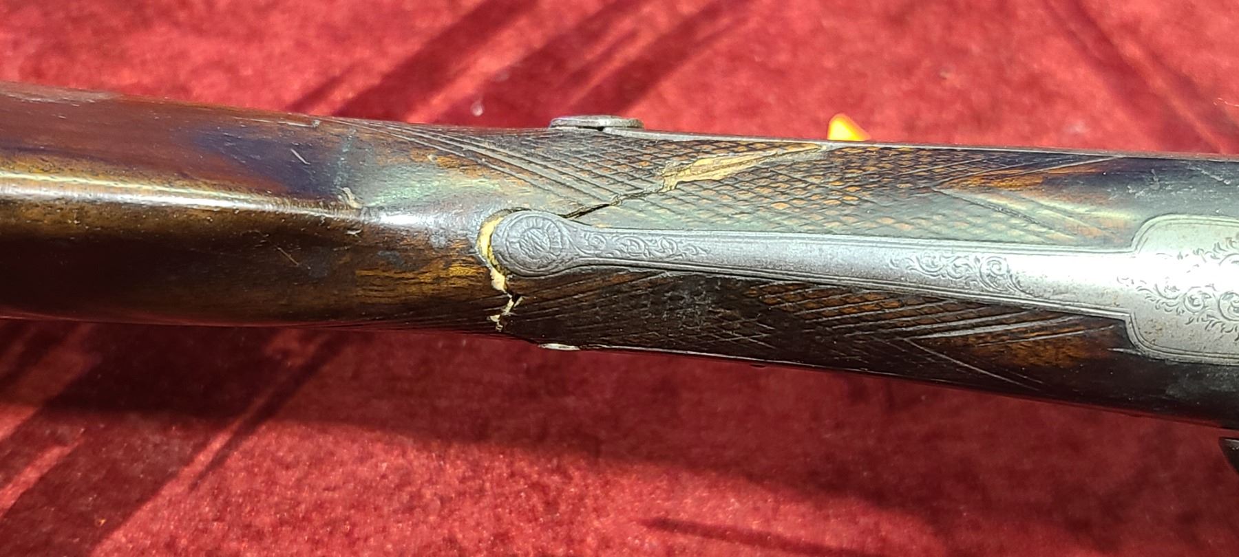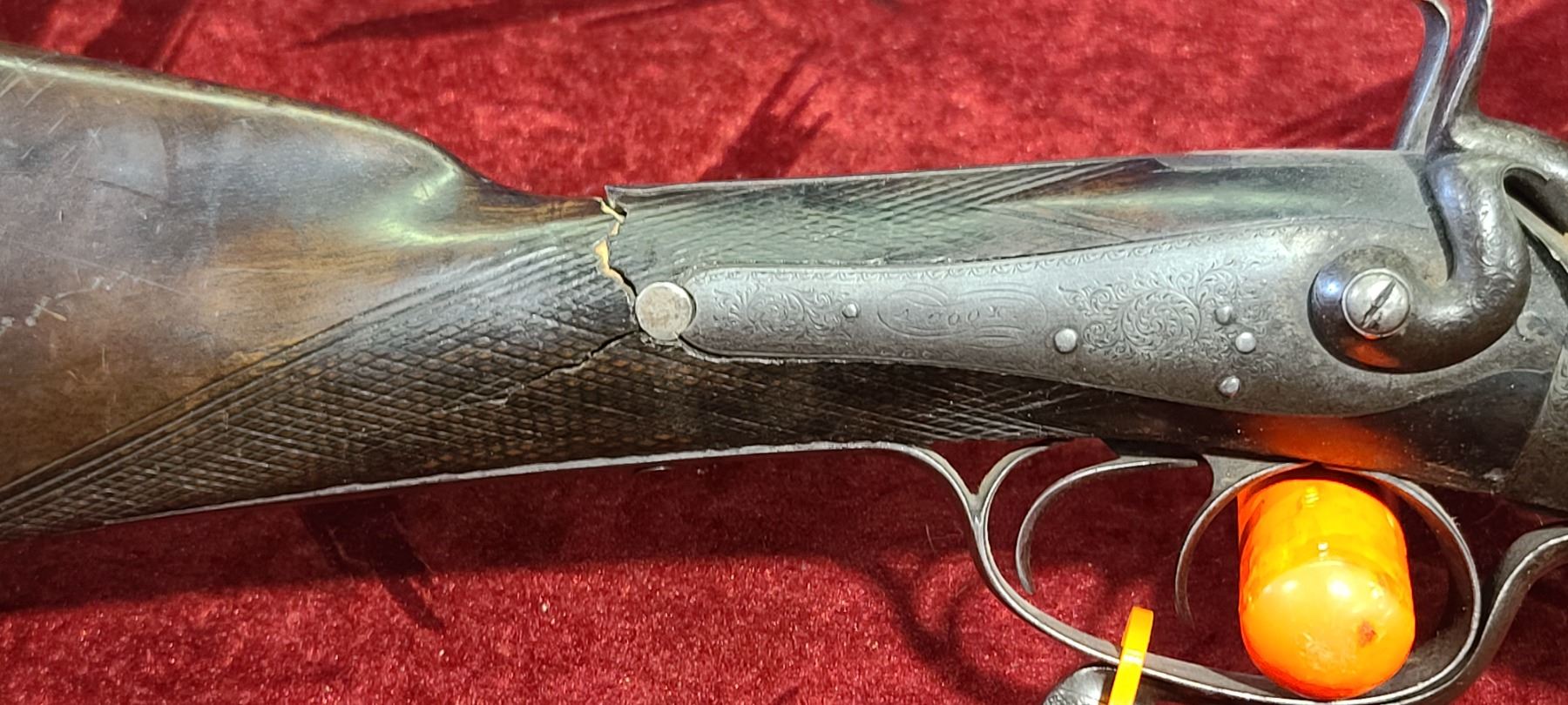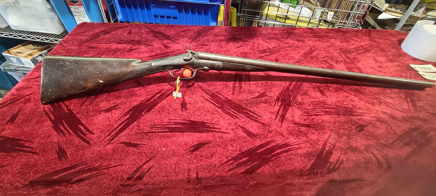 DAMASCUS UNDER LEVER HAMMER GUN STOCK BROKEN 28 INCH BARREL (349)