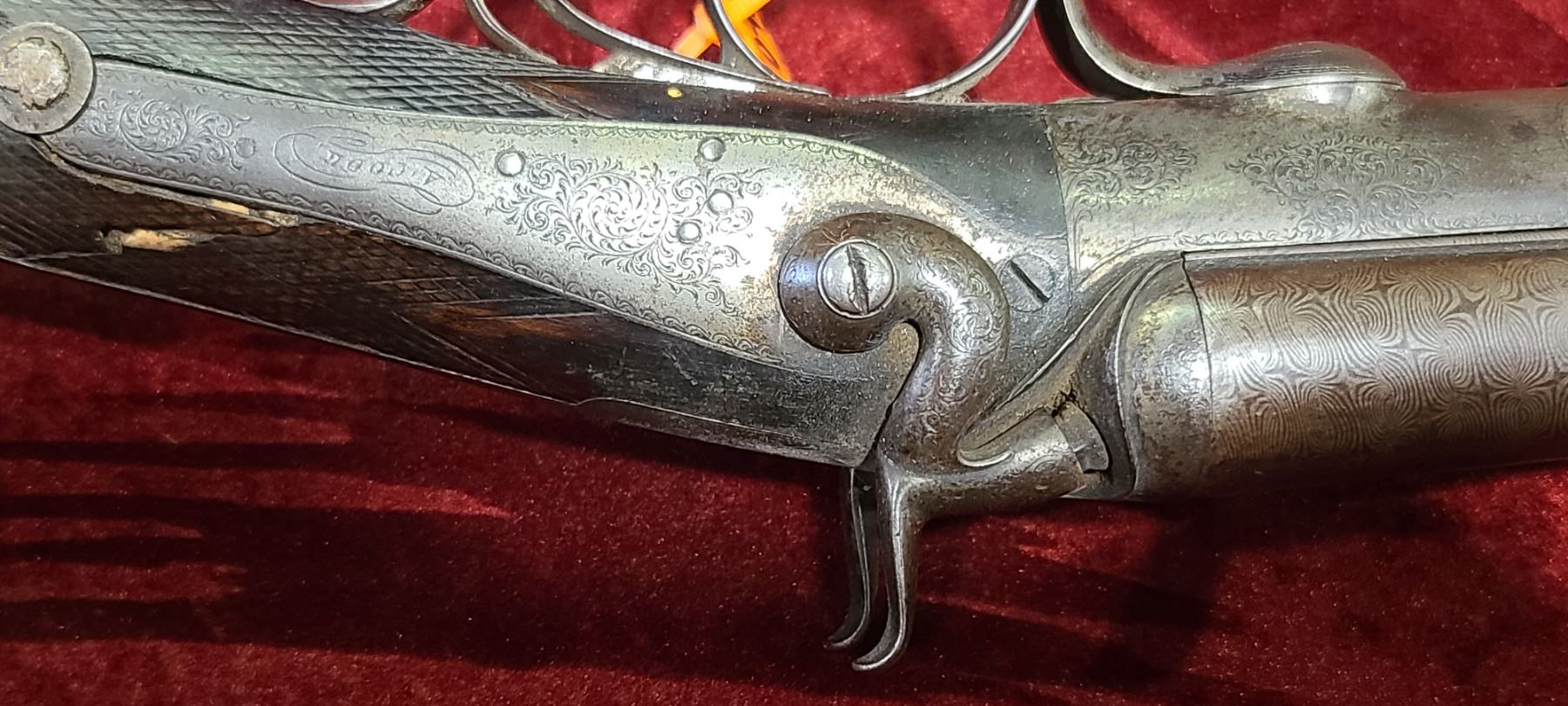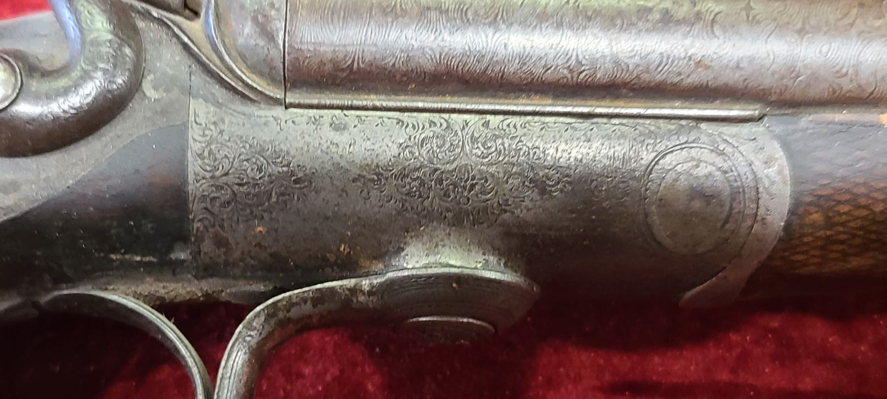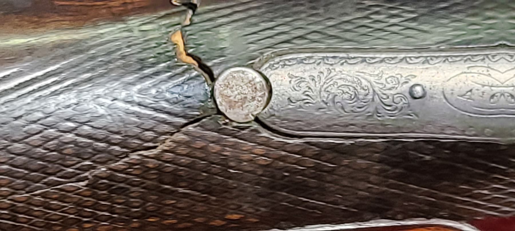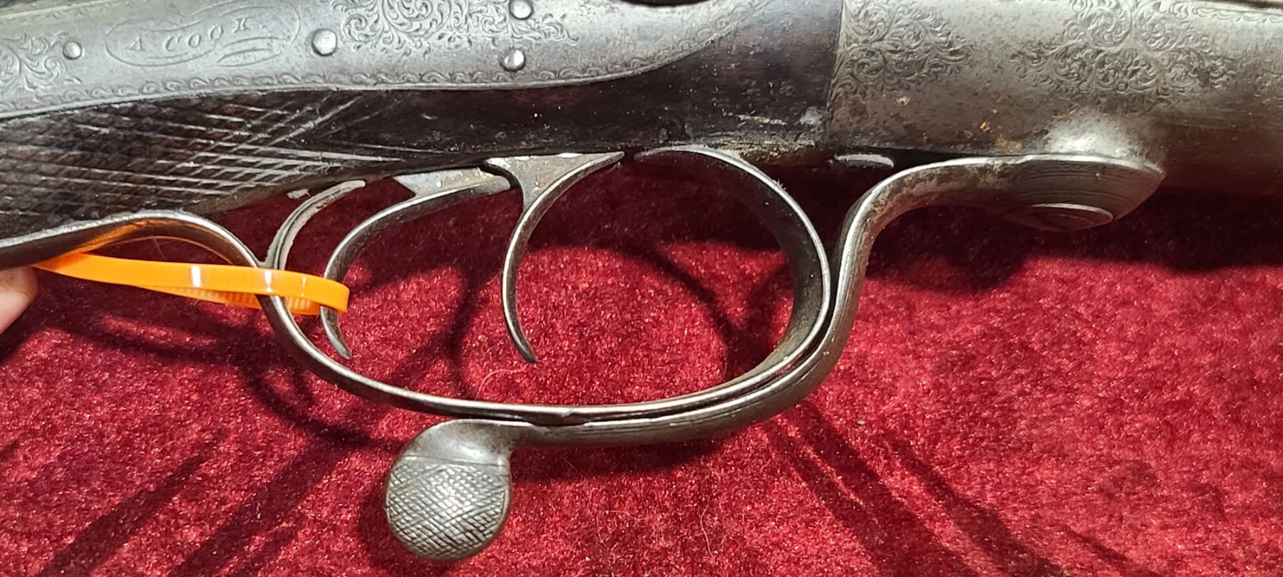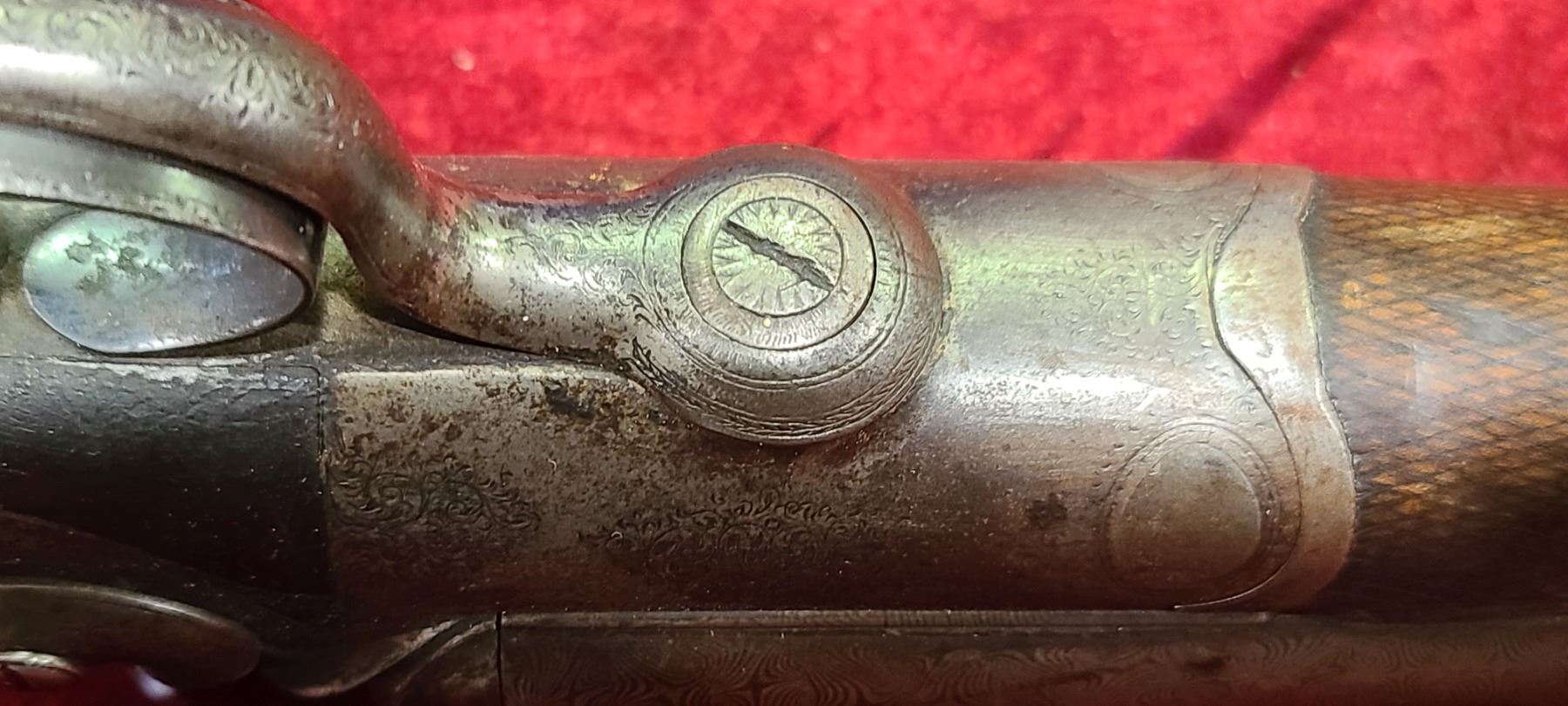 DAMASCUS UNDER LEVER HAMMER GUN STOCK BROKEN 28 INCH BARREL (349)