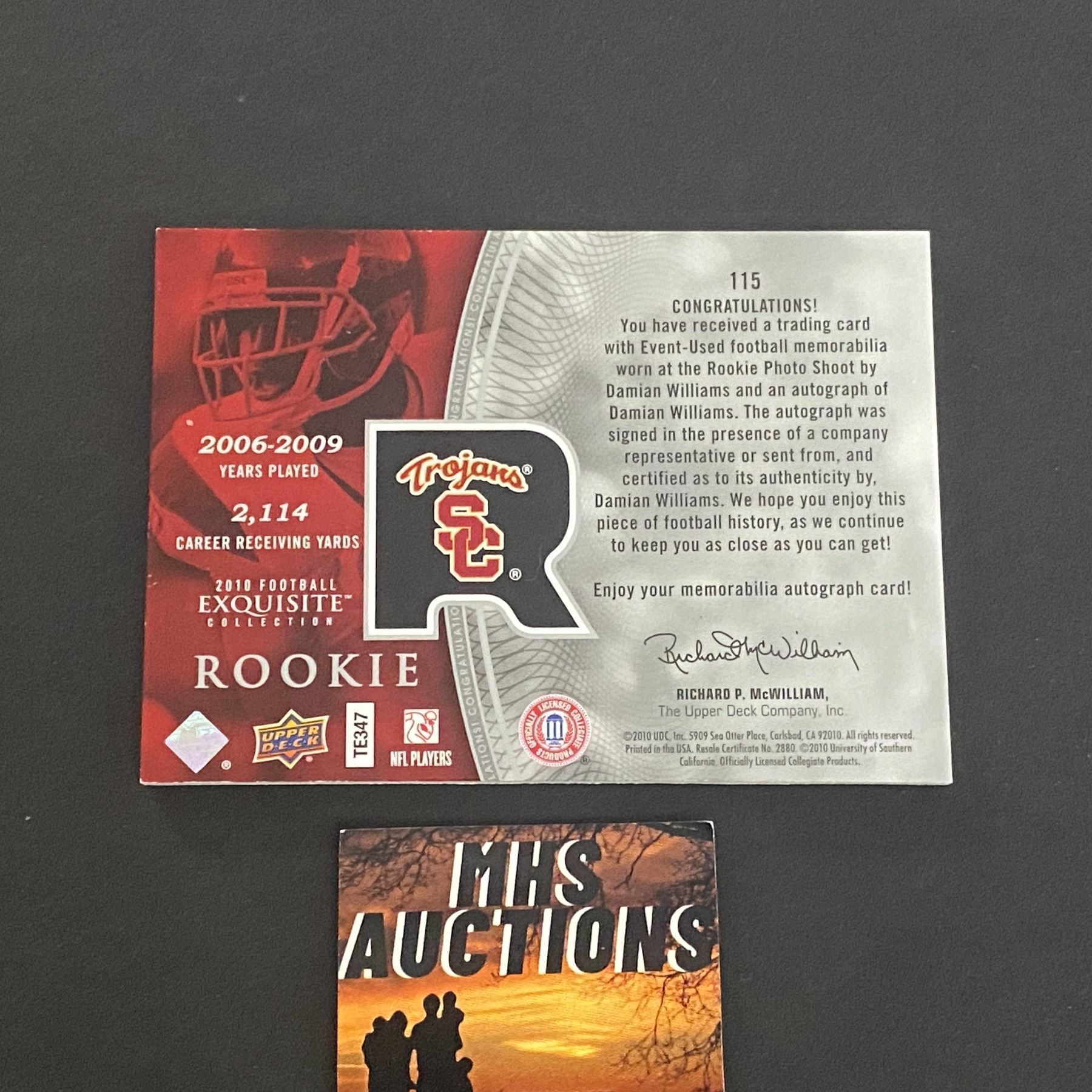 DAMIAN WILLIAMS ROOKIE AUTOGRAPH/JERSEY PATCH CARD EXCELLENT PATCH #D/120