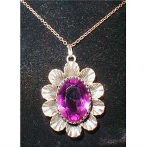 amethyst colored stone set among ridged flower petals.
