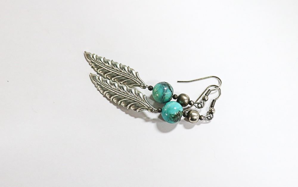 DANGLE STYLE FEATHER EARRINGS W/ TURQUOISE STONE