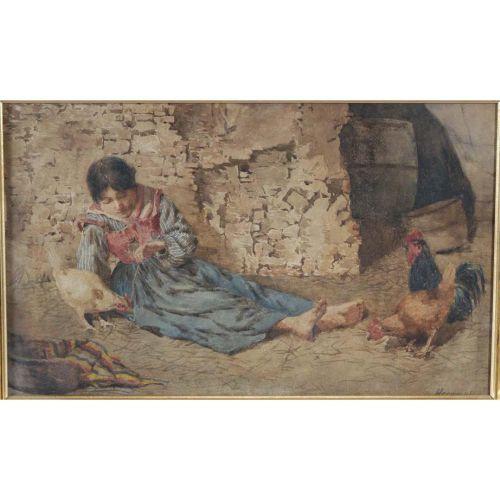 DANIEL HERNANDEZ (Peruvian, 1856-1932) 13"x 21" watercolor, signed lower right CONDITION REPORT: toning.