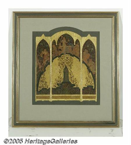 <B>DANIEL MACMORRIS (American 1893-1981)</B></I><BR>Design for decorative screen<BR>Gouache on paper board<BR>16.75in. x 14.75in.<BR>Signed lower right<BR><BR>Condition Report: Panel is slit to represent side panels of screen, overall very good condition, small tears at bottom of slits<BR>