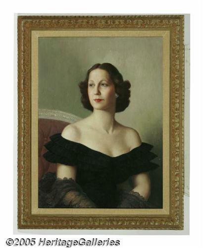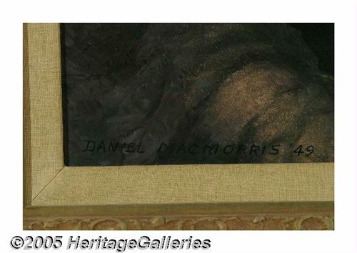 <B>DANIEL MACMORRIS (American 1893-1981)</B></I><BR>Portrait of Helen, 1949<BR>Oil on canvas<BR>30in. x 22in.<BR>Signed and dated lower left<BR><BR>Condition Report: Canvas is beva-lined, significant lifting and flaking in background above and to the left of head, lifting and paint loss lower right side 8in. from bottom, retouching of surface scratch (2in.) above sofa, small patches of retouching in area left of head<BR>