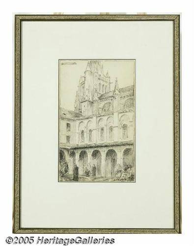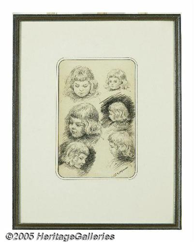 <B>DANIEL MACMORRIS (American 1893-1981)</B></I><BR>Two pencil drawings:Portraits of Boy, Multiple portrait of Girl, etching of Court Lerida<BR>Signed in ink lower right<BR><BR>Condition report: Signature on 'Portraits of Boy' appears to be over another pencil signature<BR>