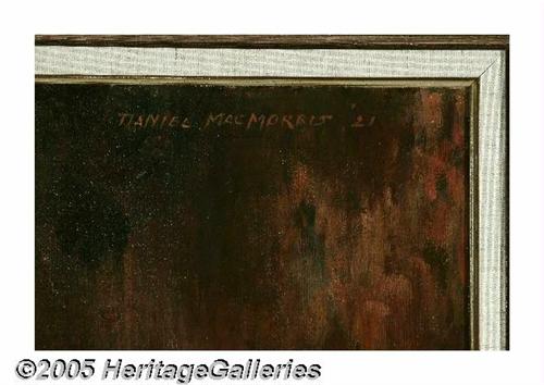<B>DANIEL MACMORRIS (American 1893-1982)</B></I><BR>Portrait of Martha, 1921<BR>Oil on canvas<BR>32in. x 33in.<BR>Signed and dated upper right.<BR><BR>Condition Report: Painting is wax-lined, extensive inpainting in background area, some inpainting in hair of figure otherwise figure is original.<BR>