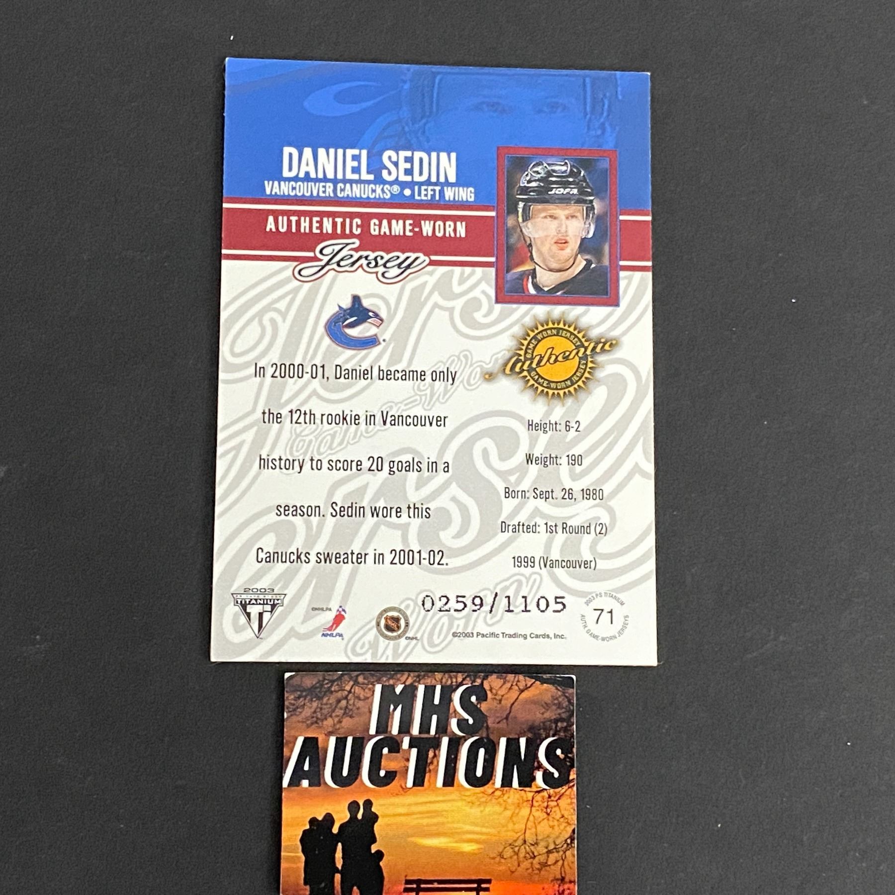 DANIEL SEDIN 2003 PACIFIC JERSEY HOCKEY CARD