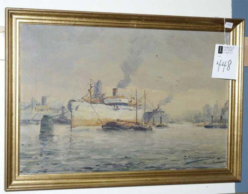 DANISH SCHOOL 16"x24" oil on canvas T.Krijgs...? Harbor scene