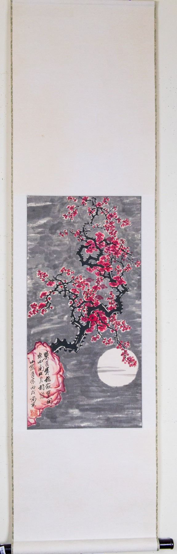 Ink and watercolor on paper, hanging scroll, featuring prunus on branch, signed Dao Zong (Chinese, modern artist), inscribed with 1 artist seal, 69 cm x 34 cm.