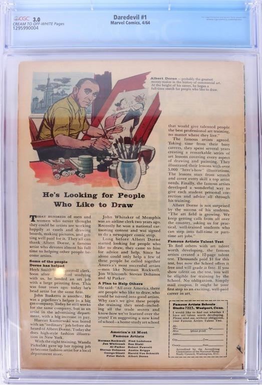 Dardevil #1 (Origin and 1st appearance of Daredevil (Matt Merdock). 1st appearance of Karen Page and Foggy Nelson. CGC graded 3.0.