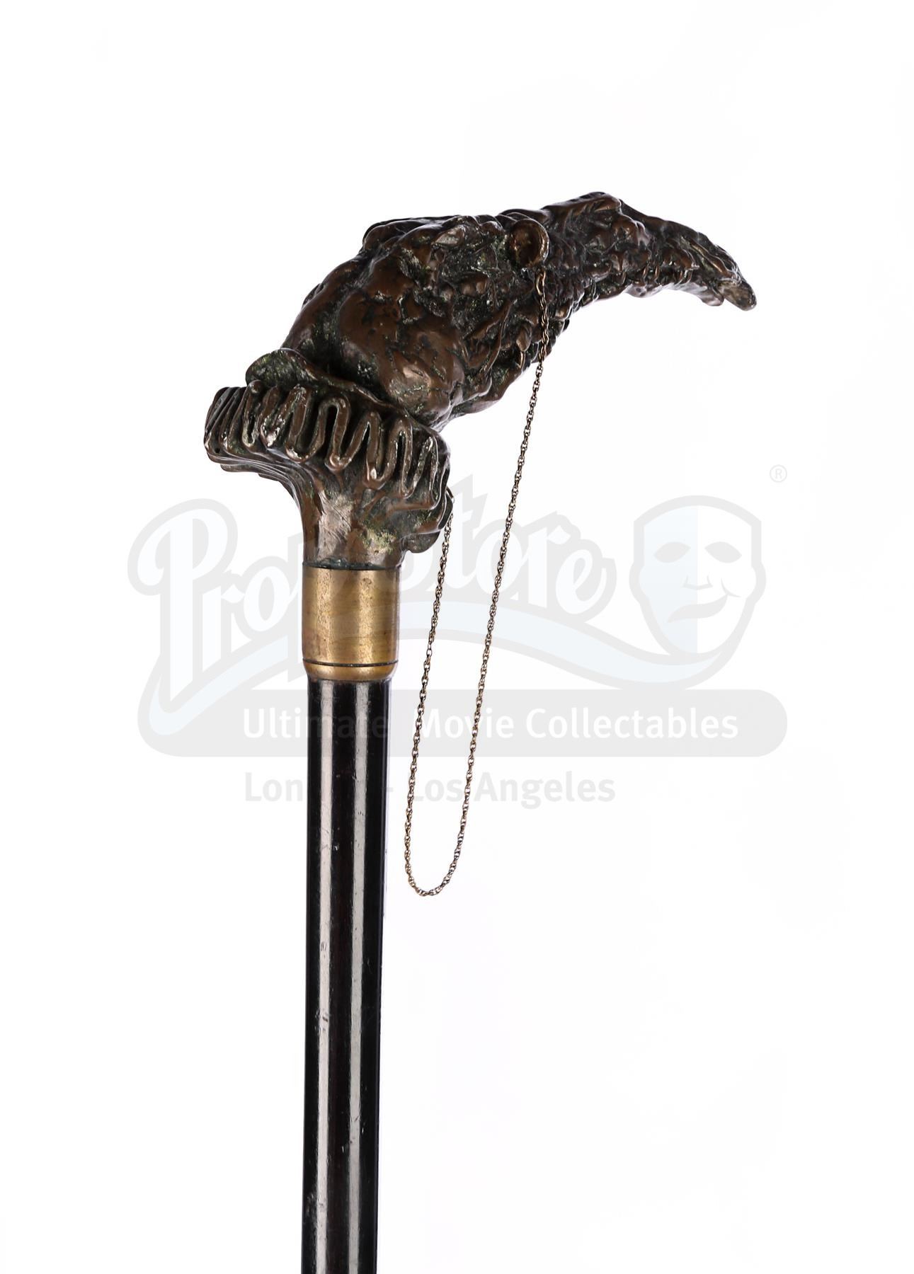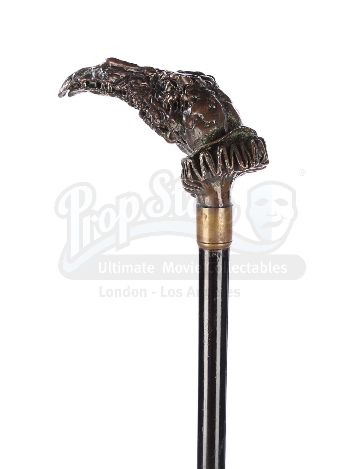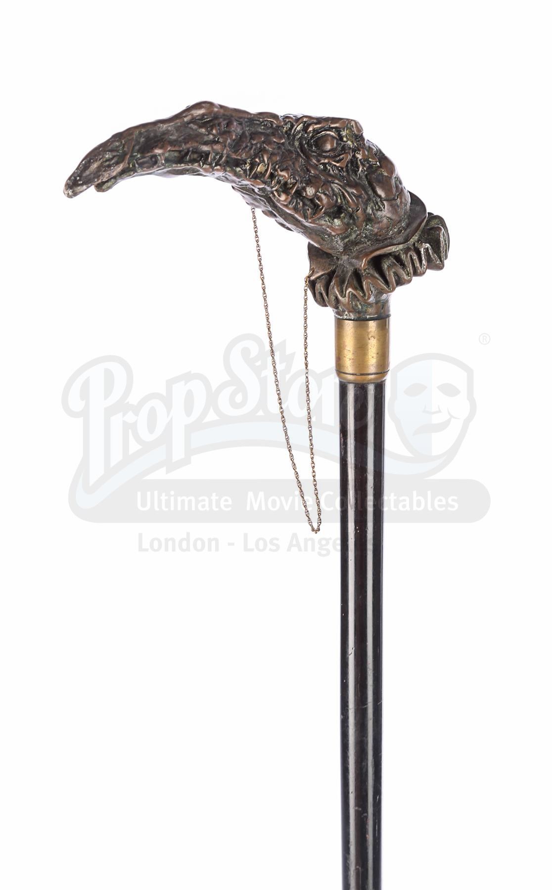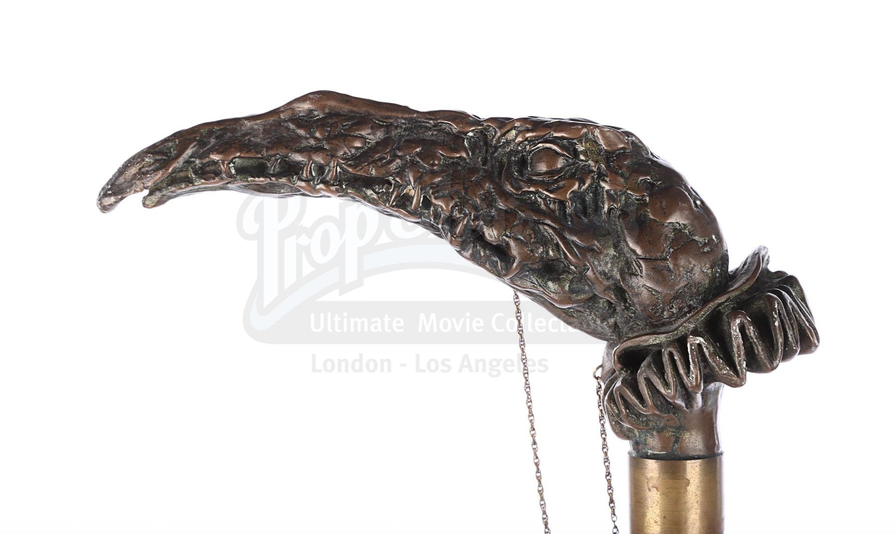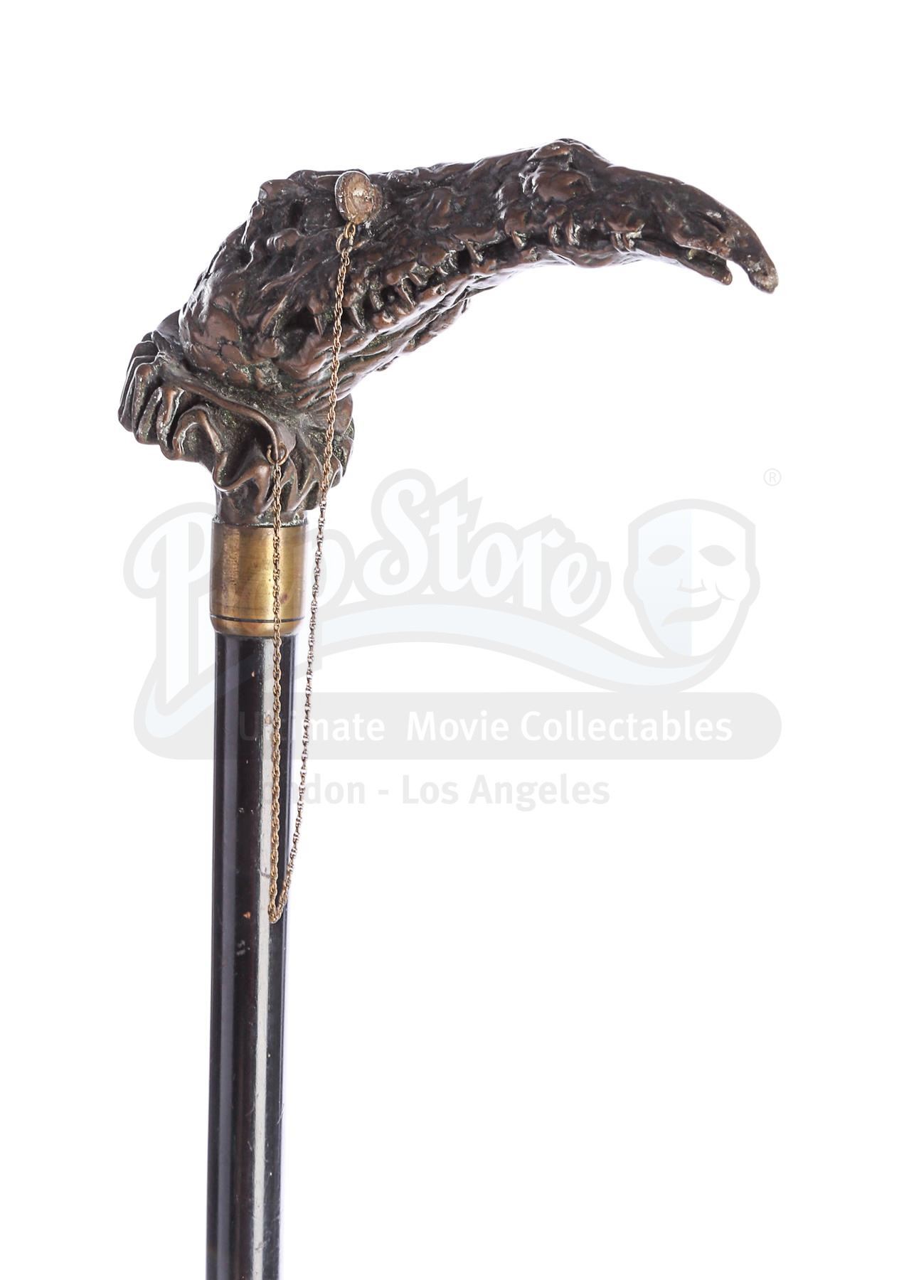 A cane featuring the likeness of a Skeksis, a malevolent creature from Jim Henson and Frank Oz's fantasy adventure The Dark Crystal. This cane was made by The Henson Company for a fashion show and clothing collection inspired by the film. Several artists and designers who worked on the film were involved in the making of the clothes and accessories.