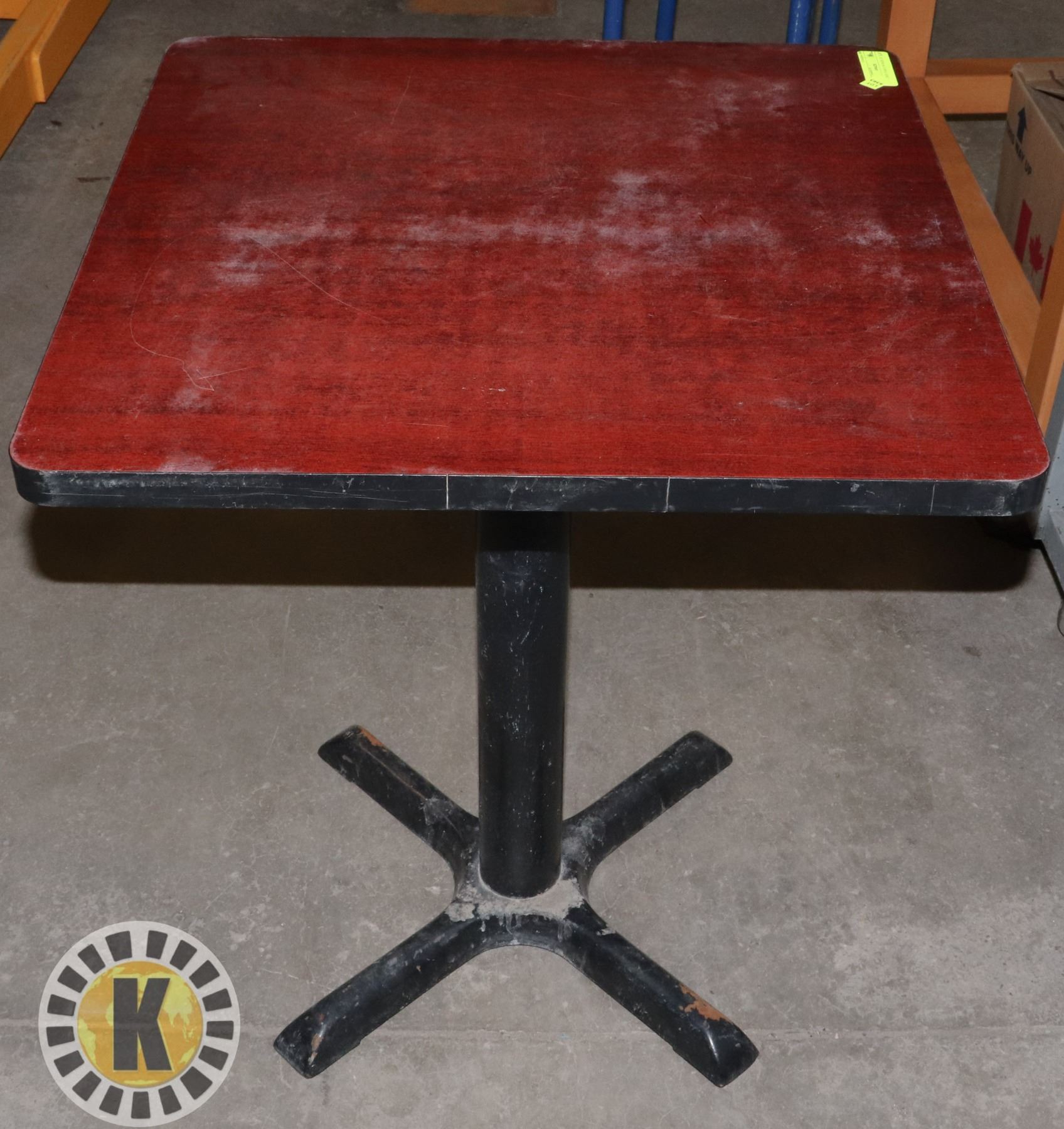 DARK RED TABLE /W BASE 24" X 24"