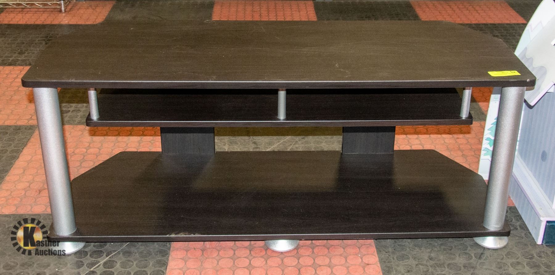 MEDIA STAND - LARGE BOTTOM SHELF, CENTER SHELF AND "CUT CORNER TOP" FOR FLAT WALL OR CORNER PLACEMENT (43.25"L X 16"W X 17.5"H) **ALL ITEMS MUST BE REMOVED BY 5PM SATURDAY, JULY 29TH 2023. ALL REMAINING ITEMS WILL BE SUBJECT TO A $6.00 PER DAY STORAGE CHARGE. ANY ITEMS REMAINING AFTER MONDAY, AUGUST 14TH, 2023 WILL BE CONSIDERED FORFEITED. NO REFUNDS WILL BE ISSUED FOR FORFEITED ITEMS. TO SCHEDULE A PICK UP APPOINTMENT CLICK HERE