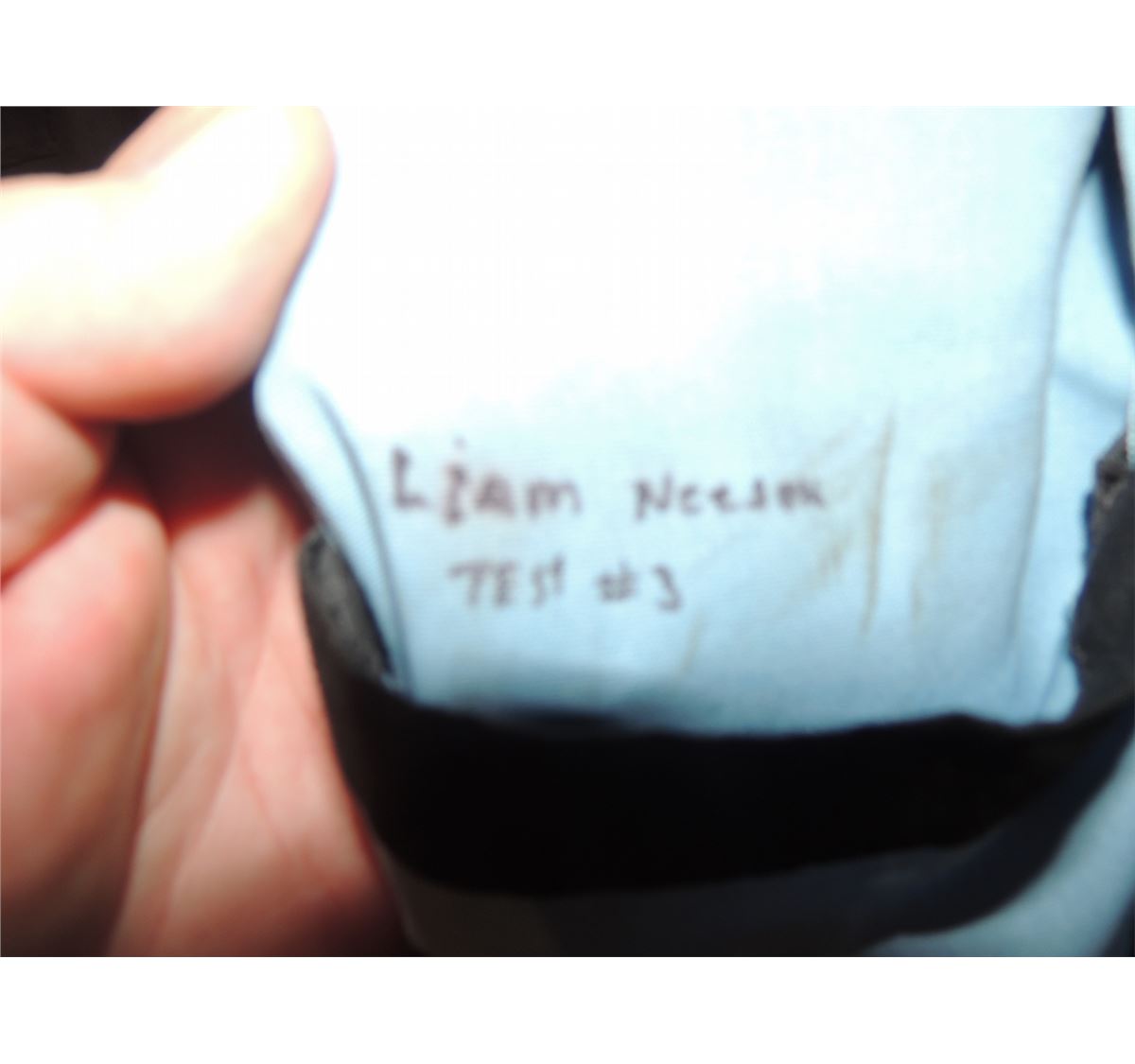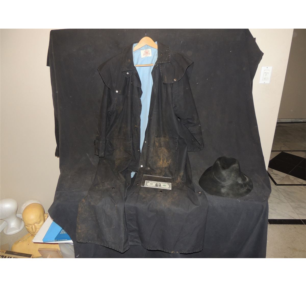 Also included here and cool in itself is a test trench coat from the same film. It is marked inside, and has leg straps at bottom to move when he walked more. Winner gets both!