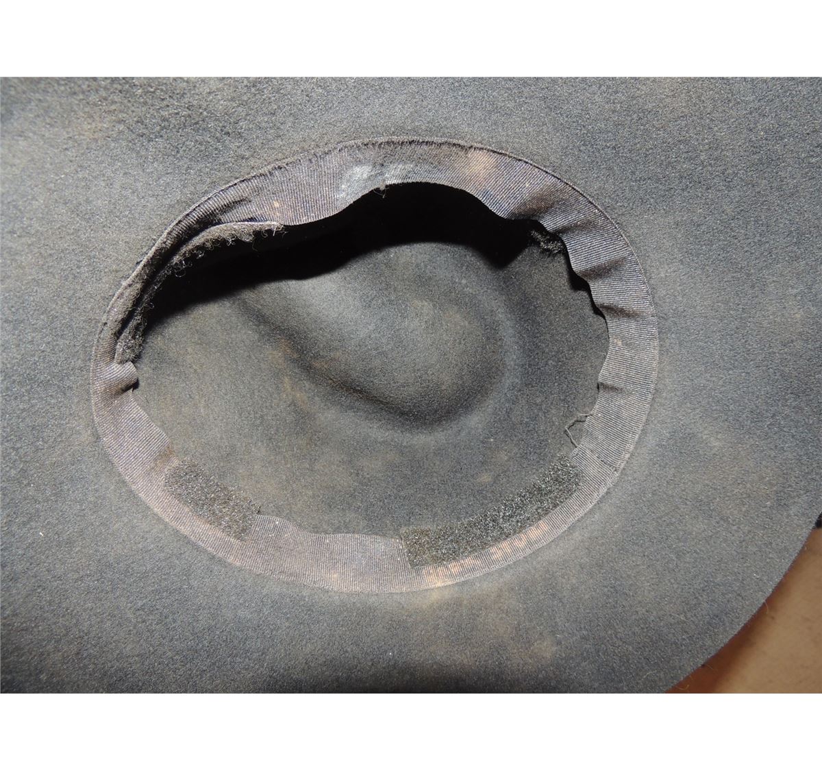 This is a screen used Fedora hat from DARKMAN. Unsure if 1 or 2 though. Inside there are velcro segments to secure to his face wrap.