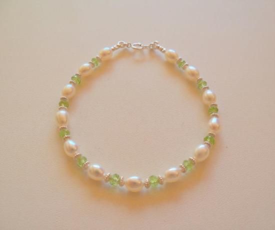 DARLING Freshwater Pearl & Peridot Sterling Silver Bracelet, measures apprx 7 1/2in