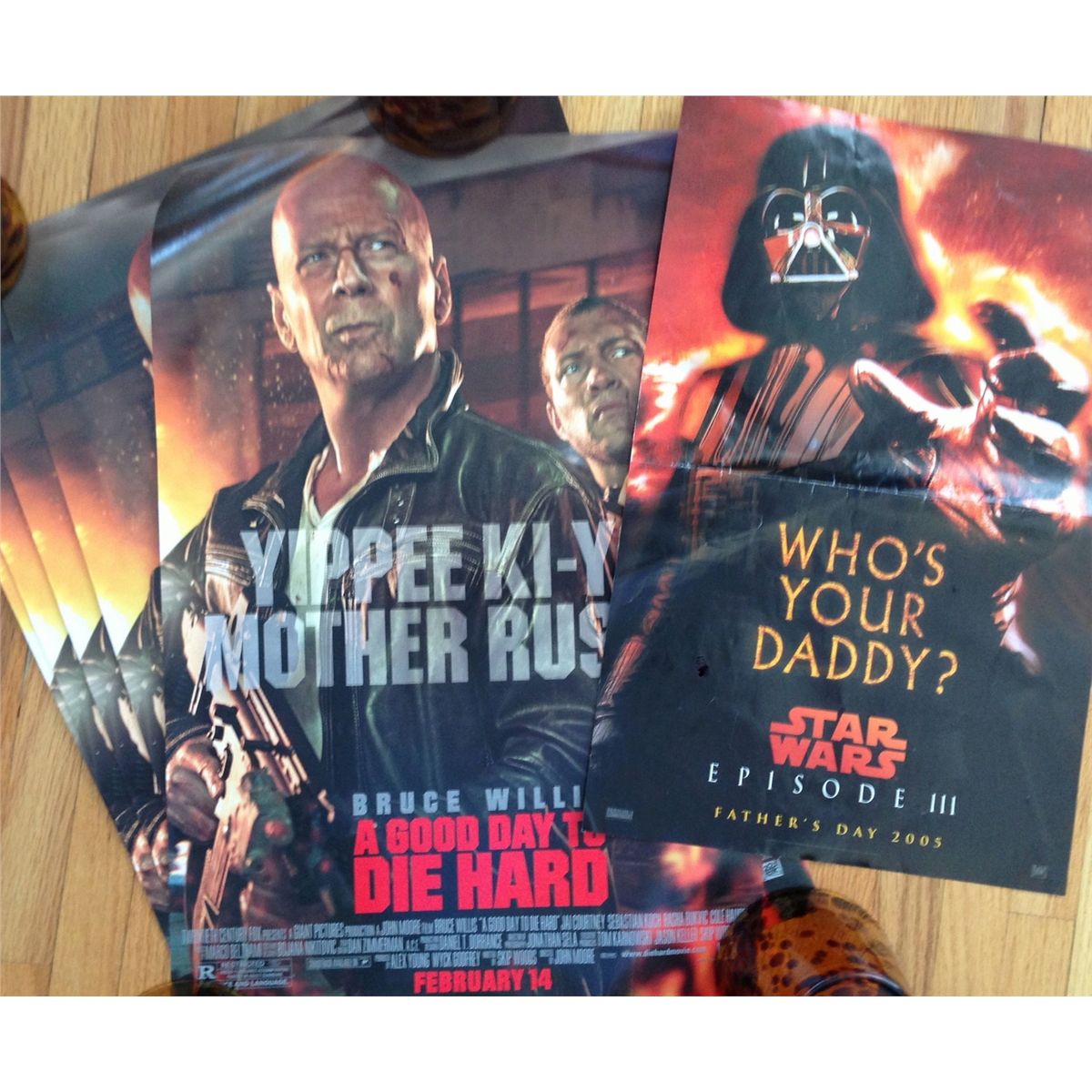 DARTH VADER STAR WARS WHO'S YOUR DADDY POSTER and a set of 5 DIE HARD Poster with Bruce Willis.