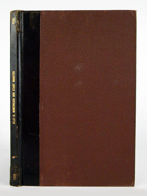 Peus, Busso. DAS GELD- UND MÜNZWESEN DER STADT MÜNSTER I. W. Münster, 1930. 8vo, later brown quarter baby calf, gilt. (4), 90, (2) pages; frontispiece; 8 fine plates. Title and verso of last plate a bit dusty, very good. Clain-Stefanelli 9450. Ex Stack's Numismatic Library.