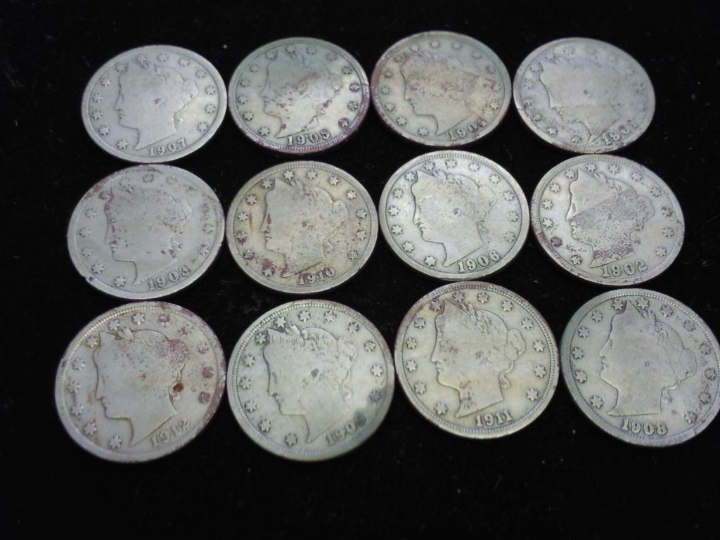 DATE RUN OF 12 LIBERTY "V" NICKELS (1901-12)
