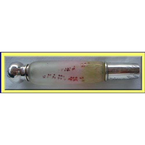 Antique lay down cameo enameled glass and sterling silver perfume bottle made by Daum, Nancy, France, late 19th - early 20th century. <P><P>