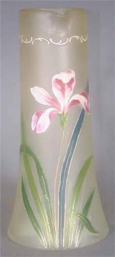 DAUM NANCY ENAMELED GLASS PITCHER, signed near base height: 12"