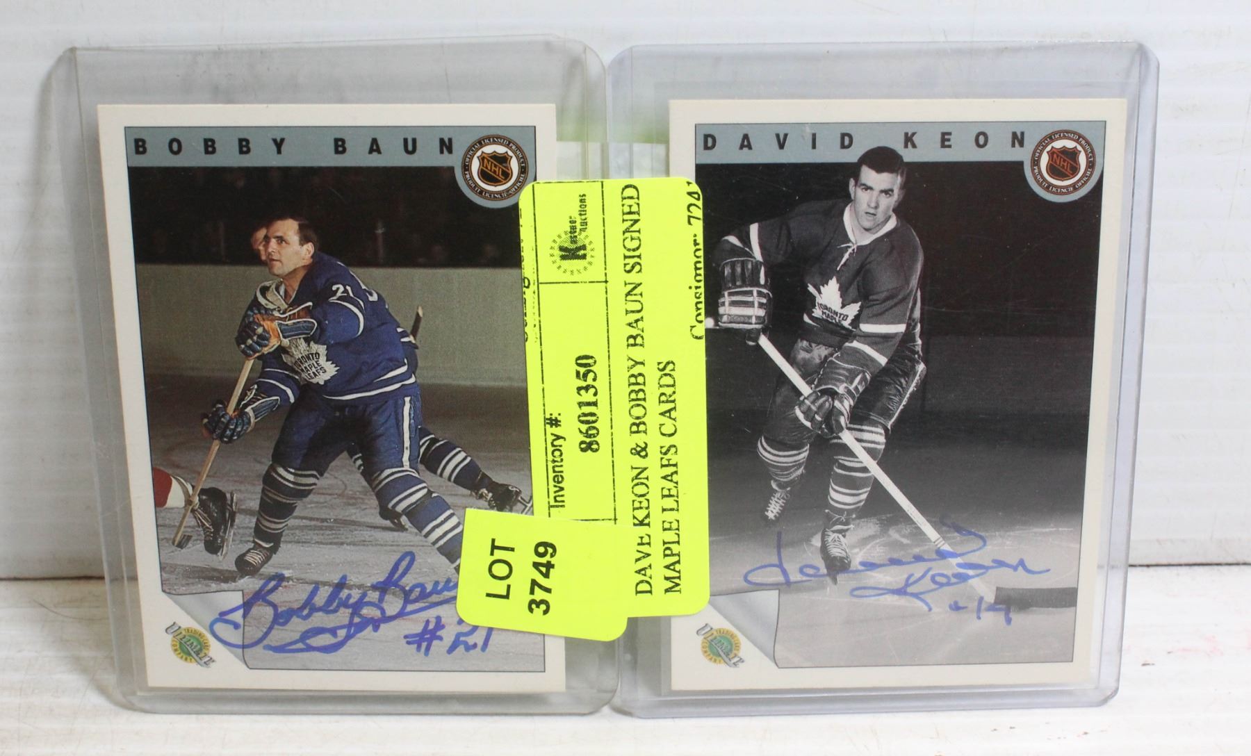 DAVE KEON & BOBBY BAUN SIGNED MAPLE LEAFS CARDS