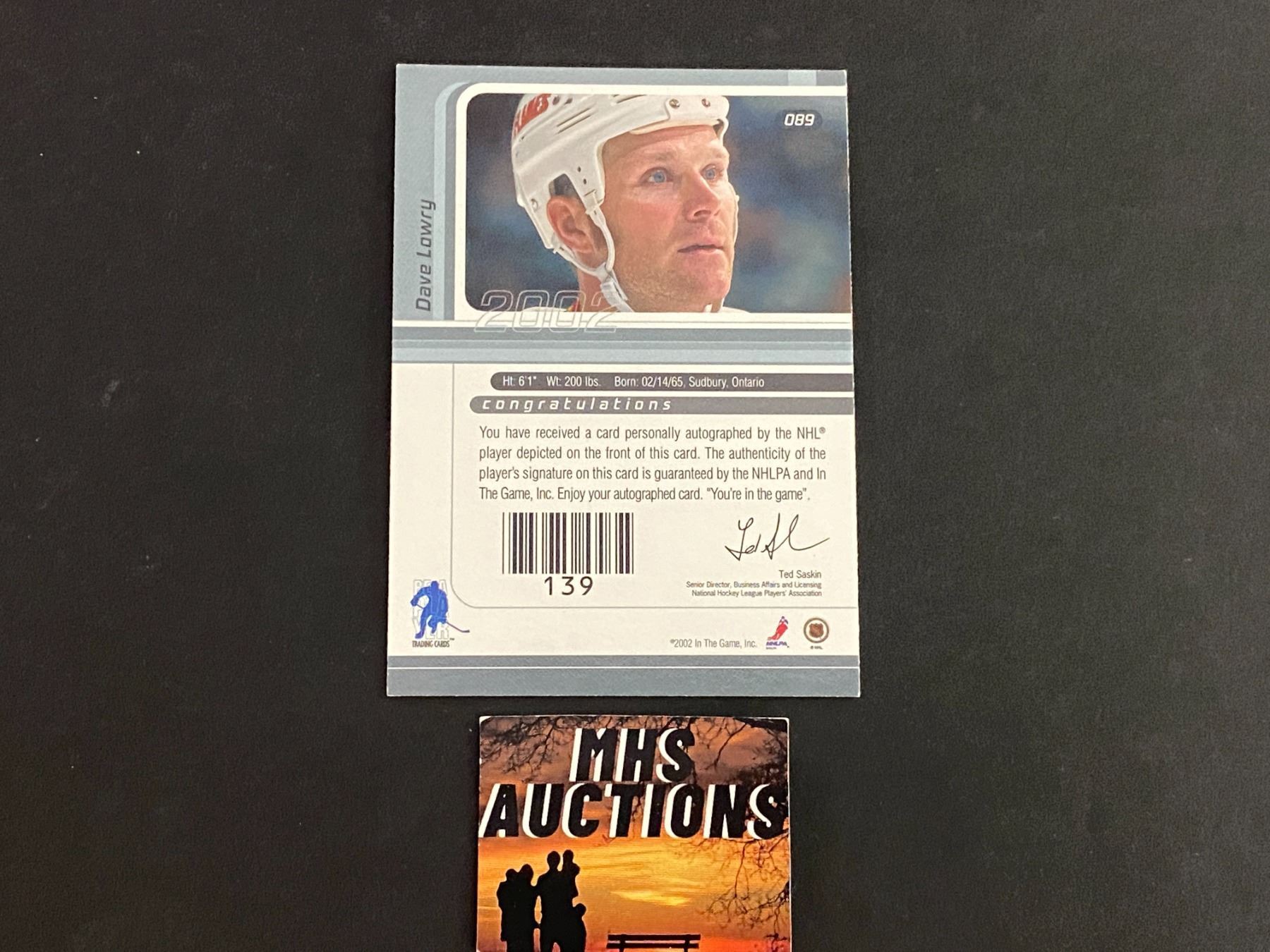 DAVE LOWRY 2002 IN THE GAME AUTOGRAPH CARD