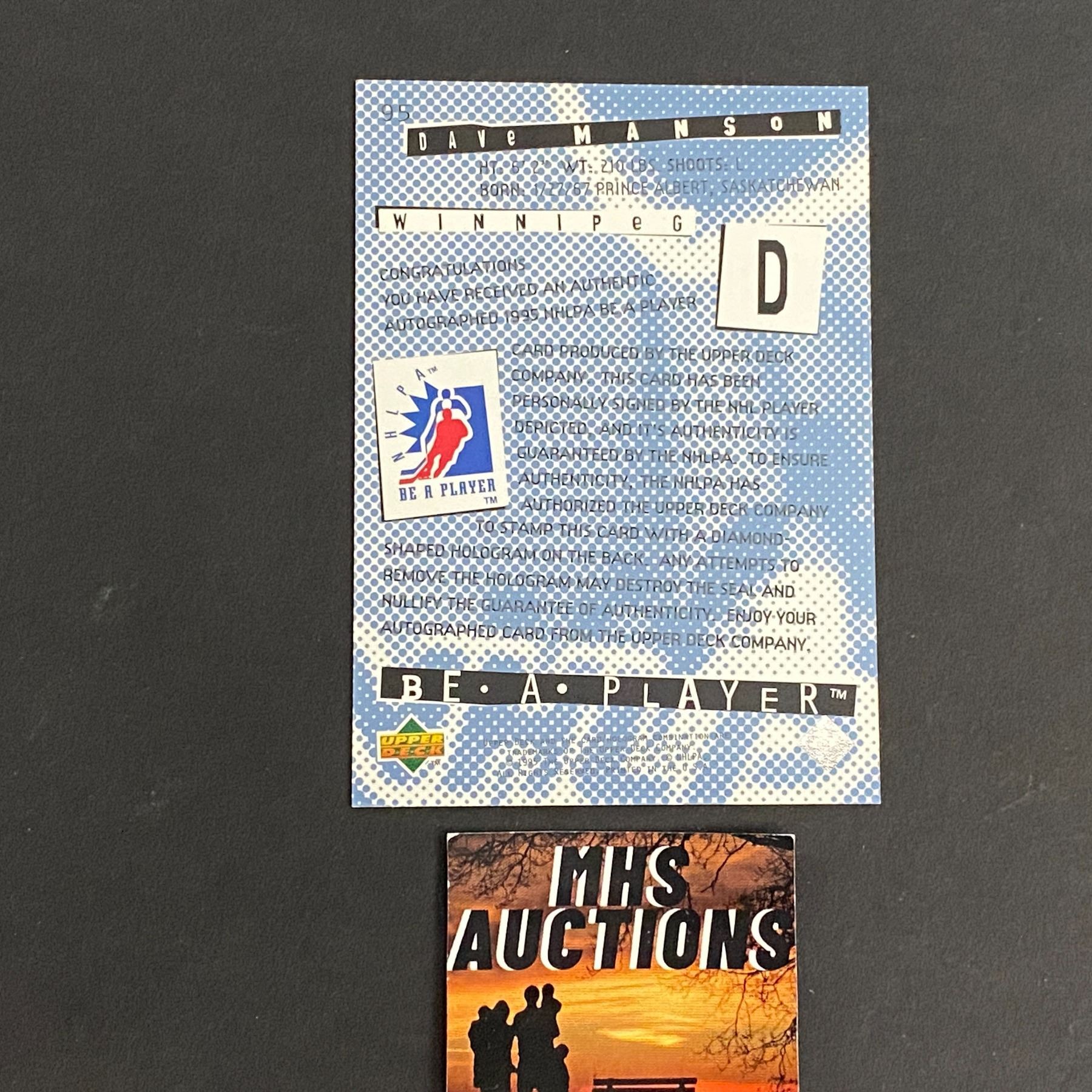 DAVE MANSON 1995 BE A PLAYER AUTOGRAPHED HOCKEY CARD