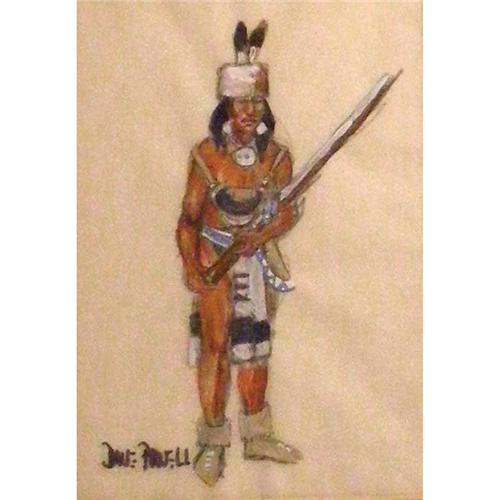 Dave Powell acrylic of a Native American holding a lance. Image size is 7.75'' x 7.25''
