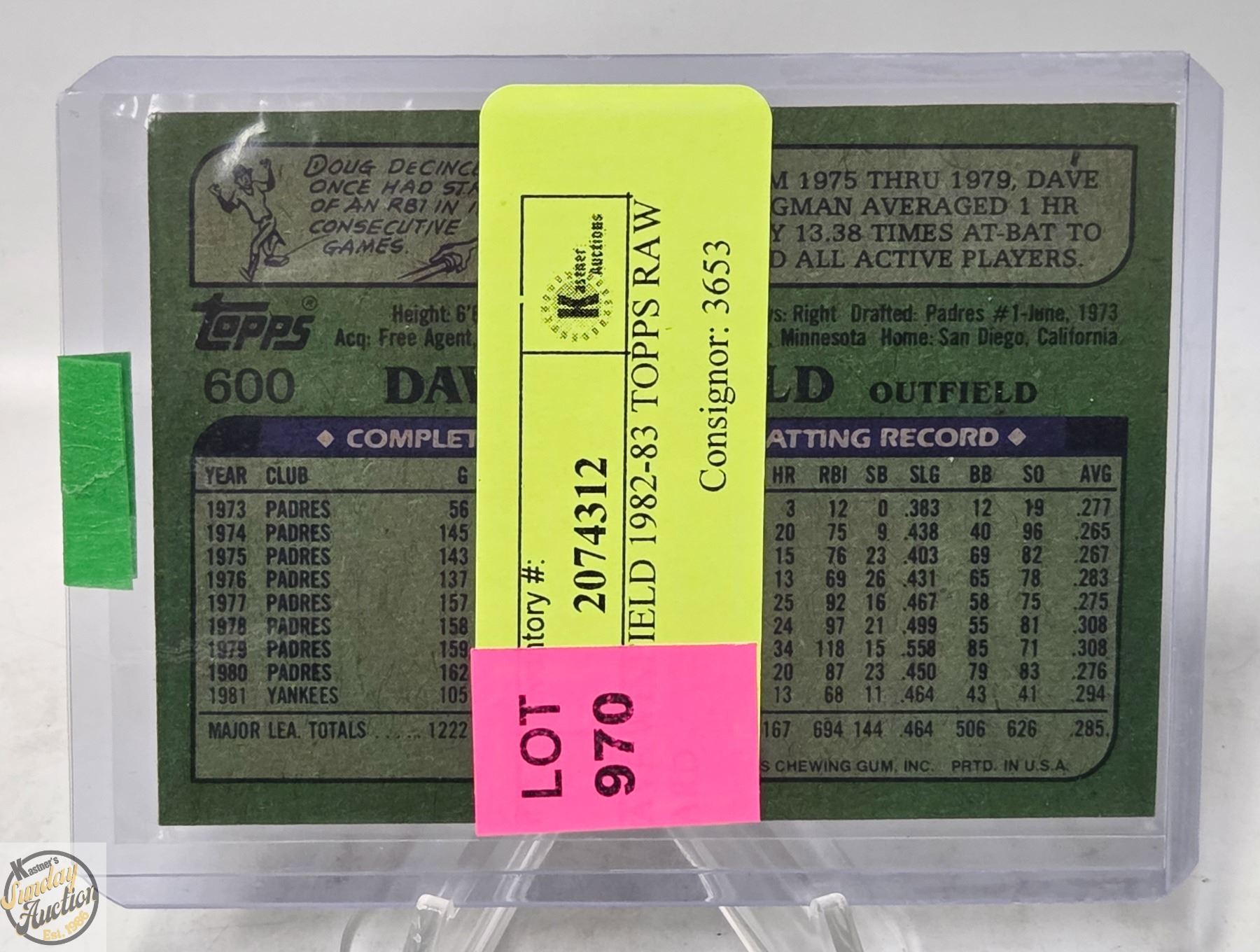 DAVE WINFIELD 1982-83 TOPPS RAW CARD