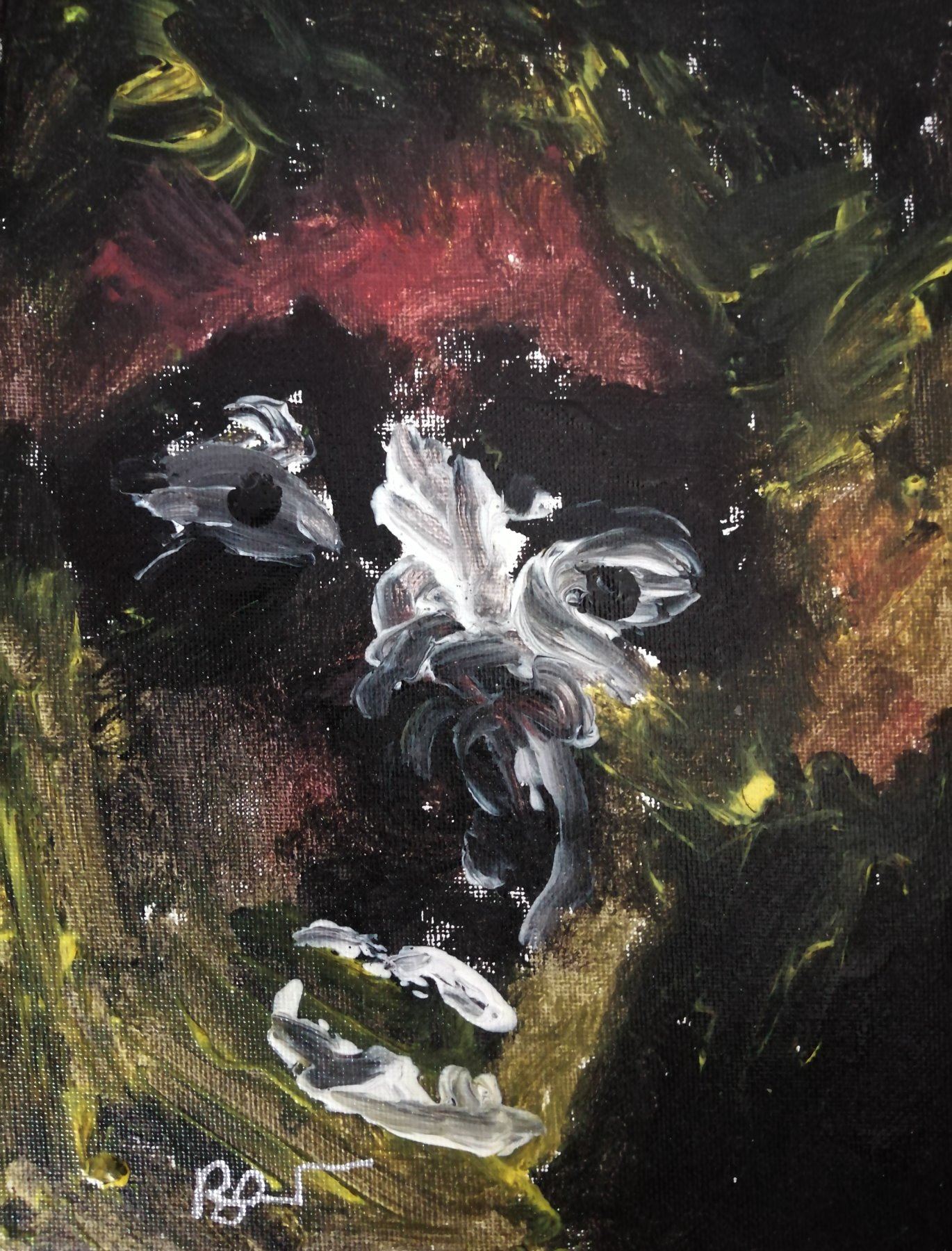 This painting is on canvas of a face that was created sometime between 95-98. Signed in silver pen by Bowie. Supplied with coa. Size of canvas: 10x8 inches. Professionally mounted and framed.
