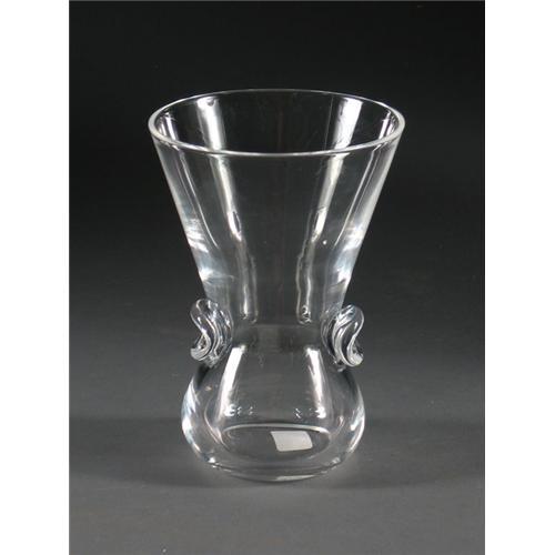 STEUBEN GLASS: A signed Steuben ''Signet'' vase, dating from 1950. The vase was designed by David Hill who worked for Steuben from 1948 - 1952 and was a graduate of the Pratt Institute before joining Steuben, 6'' H. Note: Flea bite on the side and minor surface rub marks on the base commensurate with the age.