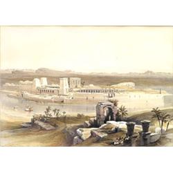 DAVID ROBERTS (English. 1796-1864), "General View of the Island Philae, Nubia". Signed in the p...