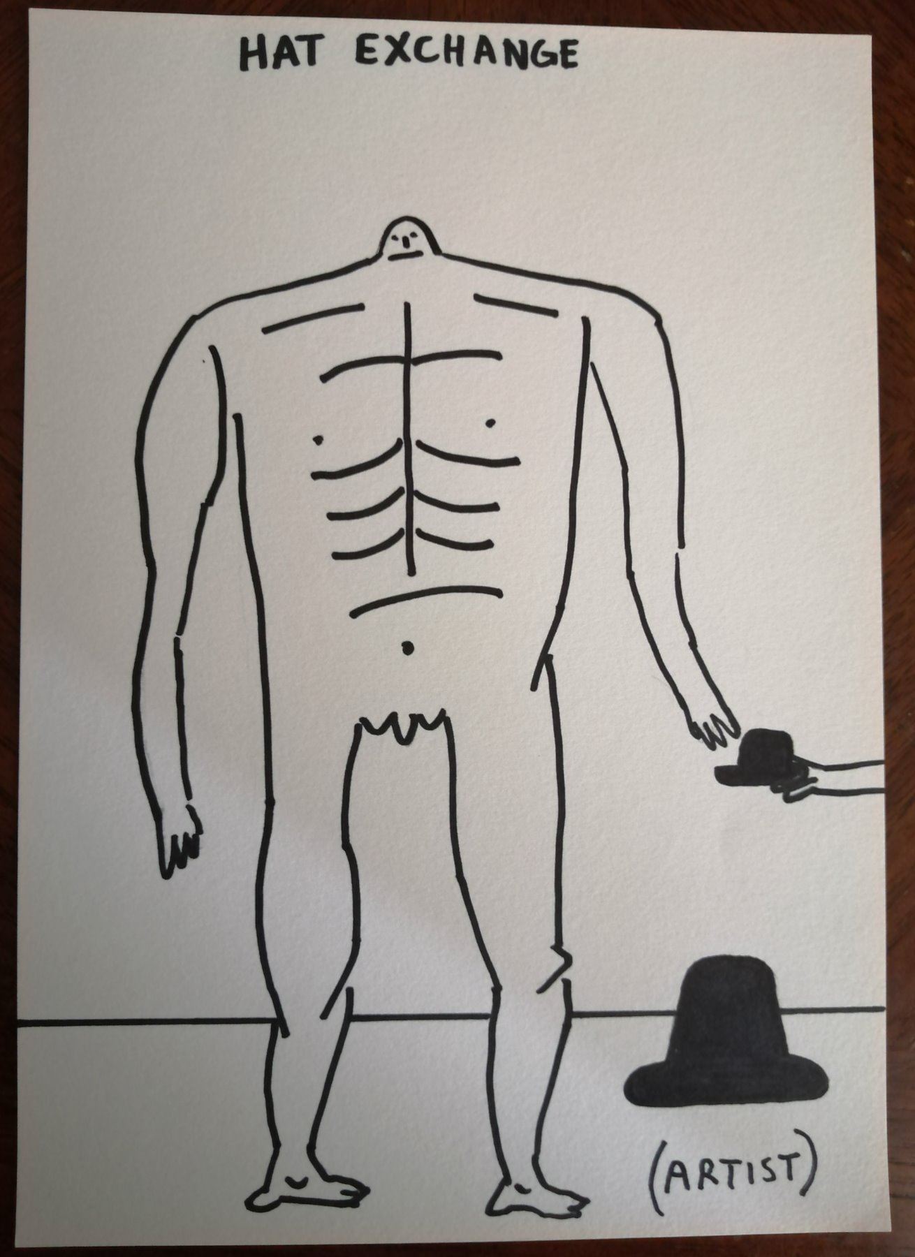A drawing 'Hat exchange' Felt tip. Signed on verso.