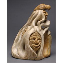 DAVID THOMAS (1950-), A stone carving of a False Face burial with an eagle spirit, signed and d...