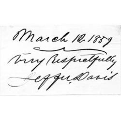 (1808 - 1889) President of the Confederacy who led his armies beyond the surrender at Appomattox. Bold signature and date: "March 12 1859 very respectfully, Jeffer. Davis". Mounted, very good.