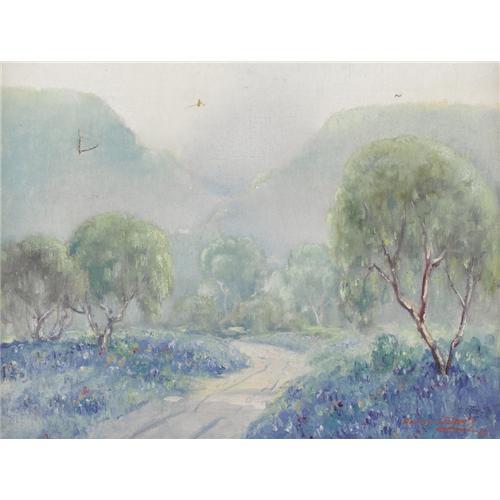 <B>DAWSON DAWSON-WATSON (1864-1939)</B></I><BR>Untitled Bluebonnet Landscape, 1936<BR>Oil on canvas<BR>17in. x 21in.<BR>Signed and dated lower right<BR><BR>A rare Dawson Dawson-Watson bluebonnet painting.<BR><BR>Provenance:<BR>Acquired by descent from the artist by the present owner<BR><BR> <B>Condition Report:</B> Painting has one-inch tear and two small punctures in the upper portion of the painting. The area between the two hills has heavy craqueleur. No losses due to flaking. Period frame in excellent condition.<BR><BR><b>Shipping:</b> Requires 3rd Party Shipping (<a target="_blank" href="http://www.heritageauctions.com/common/shipping.php">view shipping information</a>)