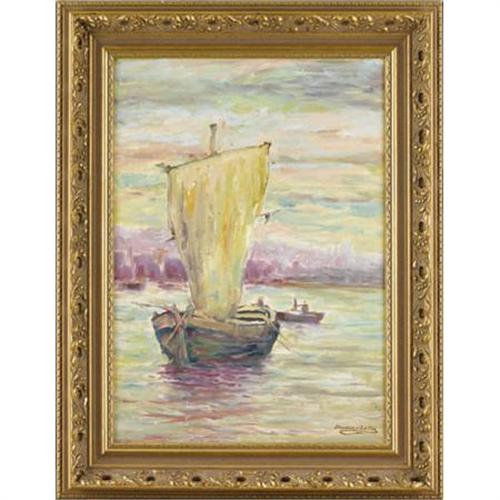 <B>DAWSON DAWSON-WATSON (1864-1939)</B></I><BR>Untitled Sailboat<BR>Oil on canvas<BR>19-1/2 x 14 inches (49.5 x 35.6 cm)<BR>Signed lower right<BR><BR> <B>Condition Report:</B> Good condition. Period frame in excellent condition.<BR><BR><b>Shipping:</b> Requires 3rd Party Shipping (<a target="_blank" href="http://www.heritageauctions.com/common/shipping.php">view shipping information</a>)