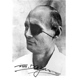 (1915 - 1981) Israeli general and politician who gained decisive victories in Sinai and Gaza during the Suez War, later planned and commanded the 1967 Six Day War and served as minister of defense. S.P. 5" x 7" b/w, showing Dayan in head and shoulders, boldly signed "M. Dayan" beneath his image. Very good.