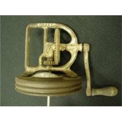 Dazey #60 butter churn. Embossed markings on glass and lid. Size is 10-1/4" x 6-3/4". Condition: Excellent, no chips