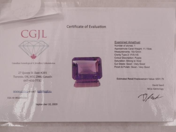 DAZZLING 11.50 CT CERTIFIED ROYAL PURPLE AMETHYST EMERALD CUT EYE CLEAN PLEASE SEE CERTIFICATION FOR FURTHER DETAILS