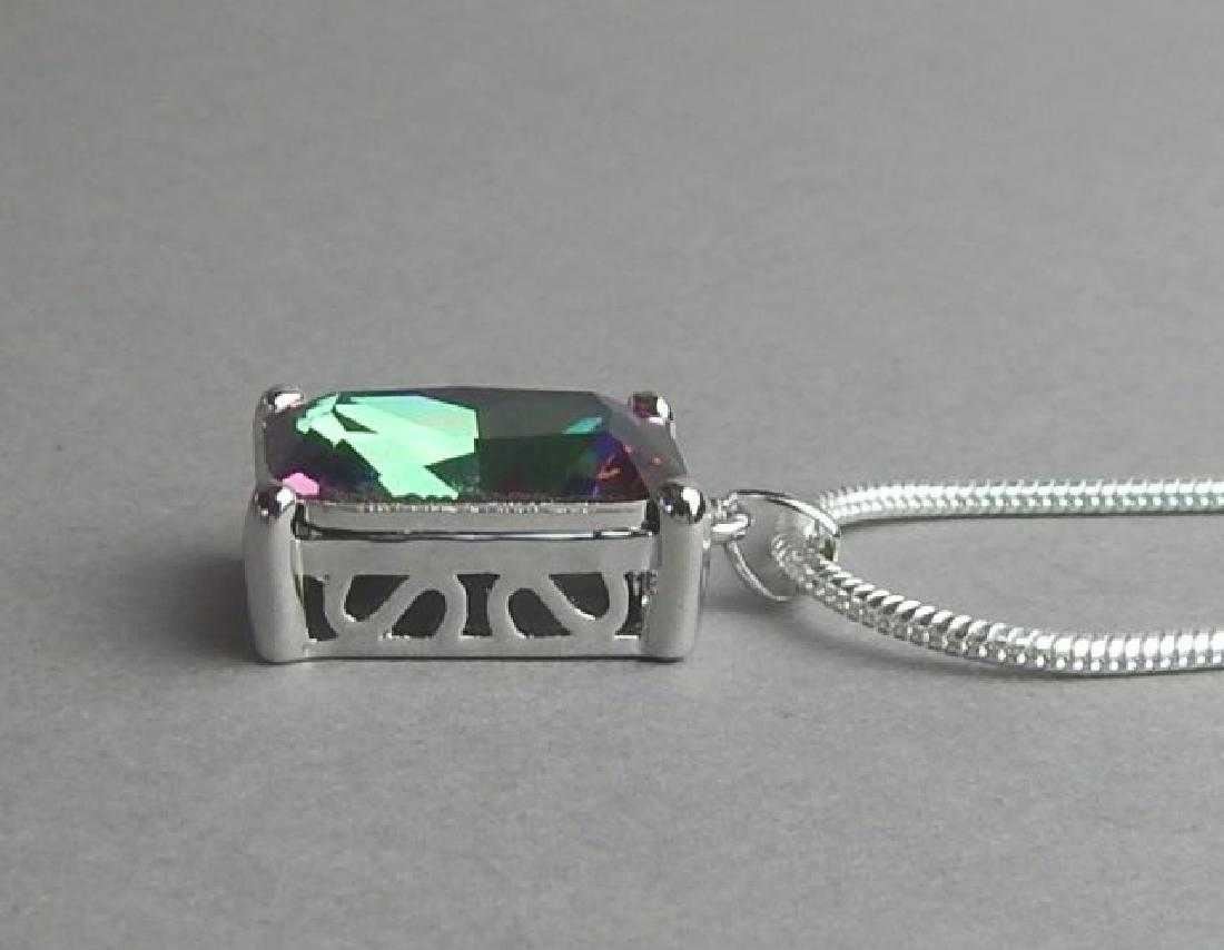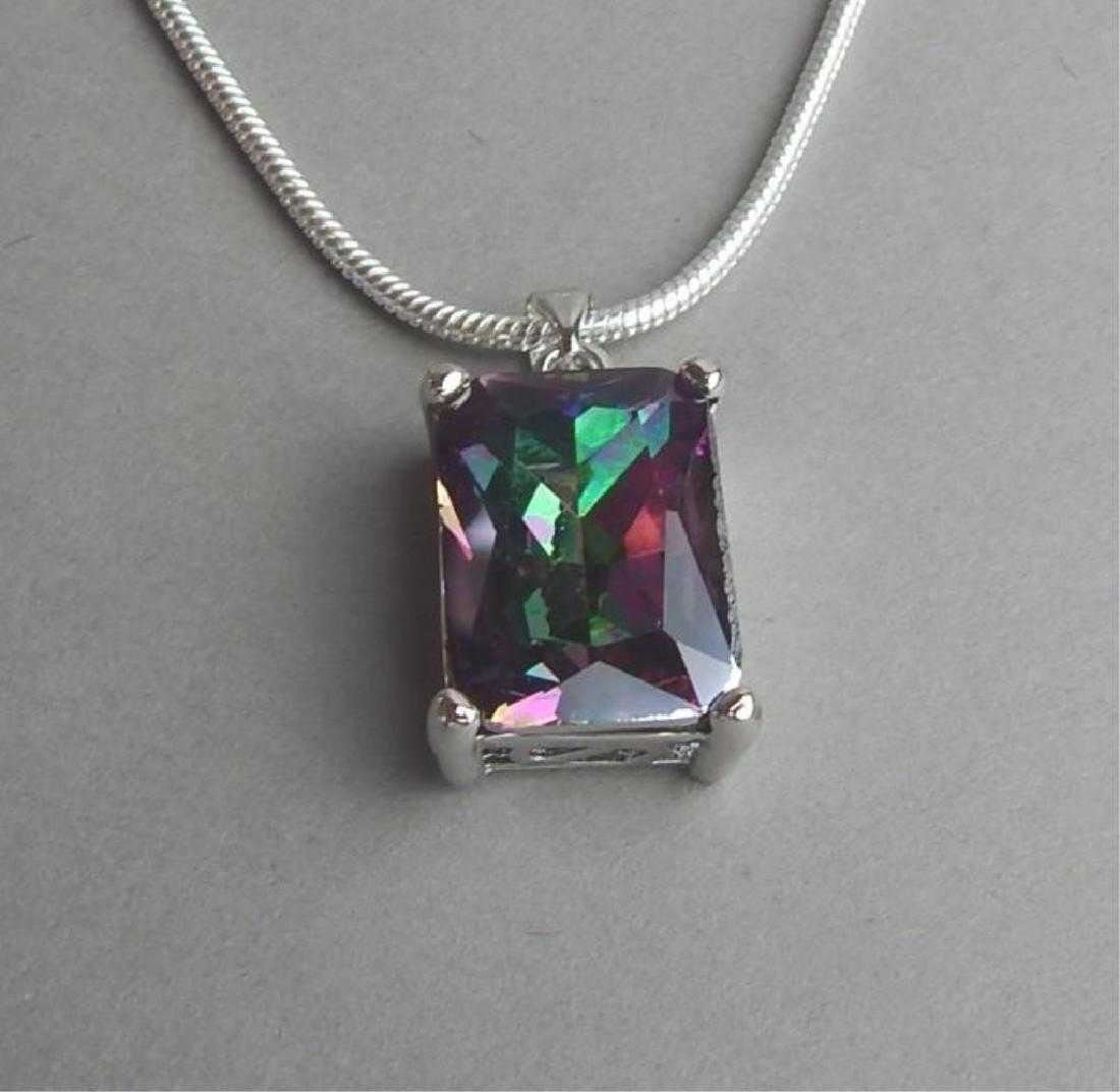 DAZZLING 19.75 CT MYSTIC TOPAZ PENDANT. OUTSTANDING EMERALD CUT DISPLAYING A FULL SPECTRUM OF COLORS. INCREDIBLE LUSTER & BRILLIANCE . MOUNTED IN .925 STERLING SIVER INCLUDES 20" 2MM CHAIN . 72 CTTW. HEATED TO ENHANCE COLOR. ABSOLUTELY STUNNING