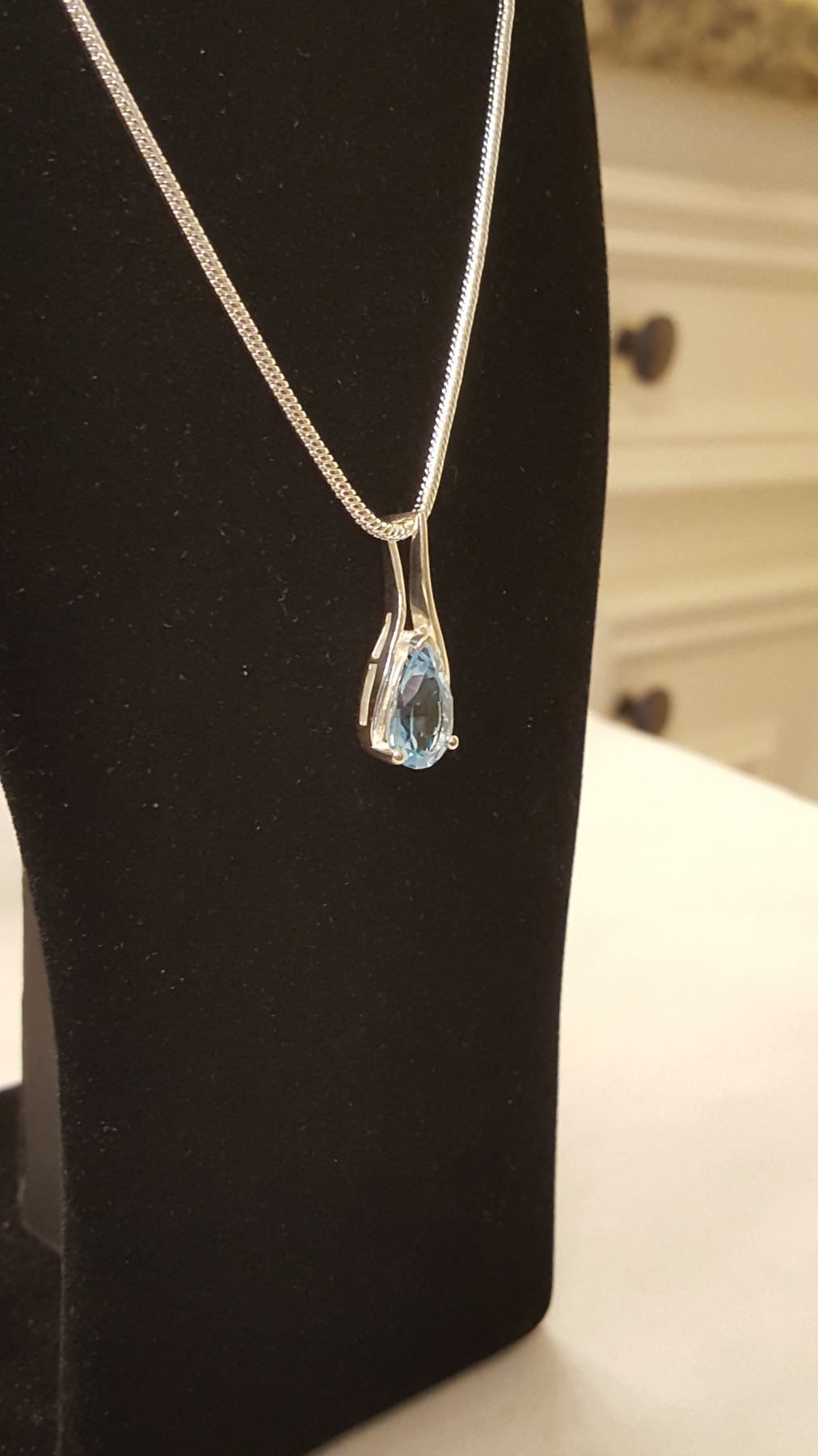 DAZZLING 3.5 CT SKY BLUE TOPAZ. MOUNTED IN SOLID .925 STERLING SILVER. INCLUDES  20 " LONG 2 MM CHAIN  CTTW